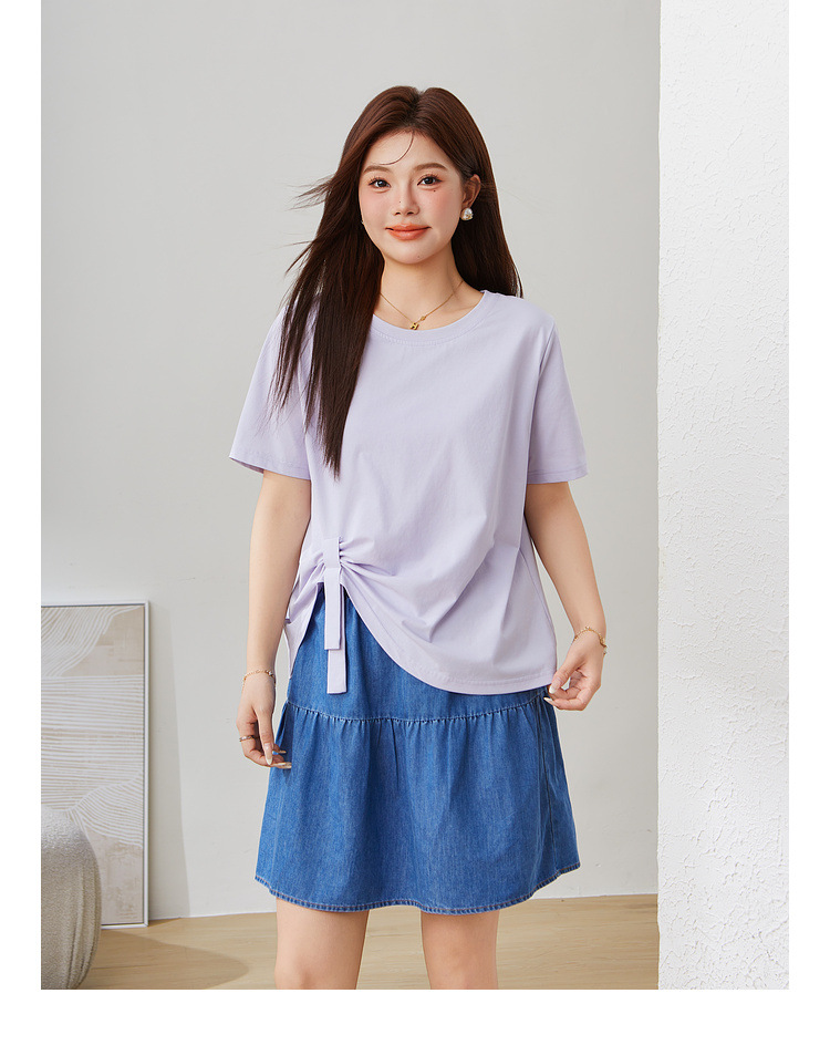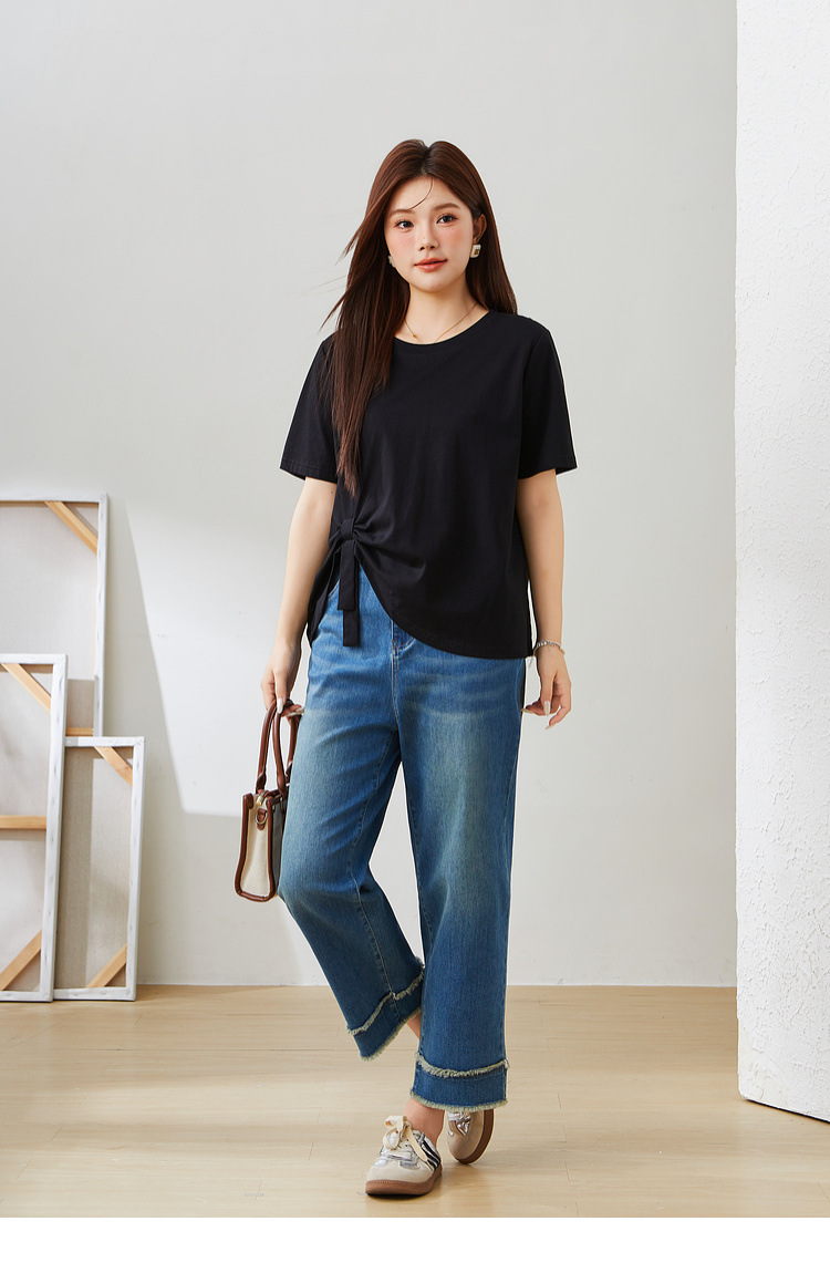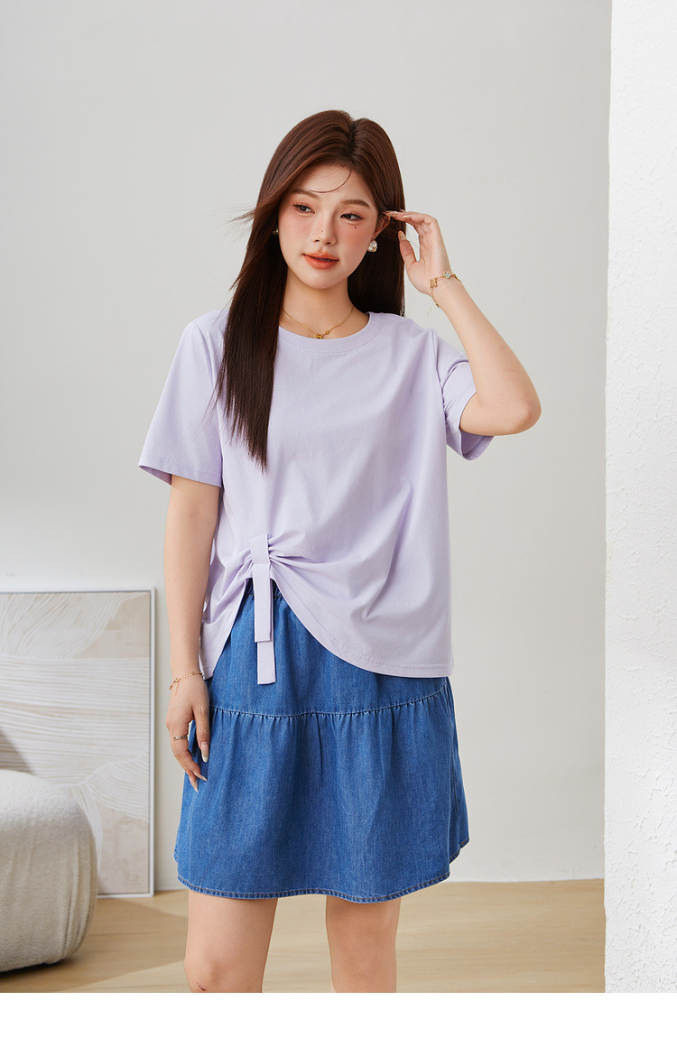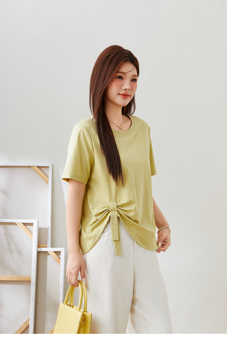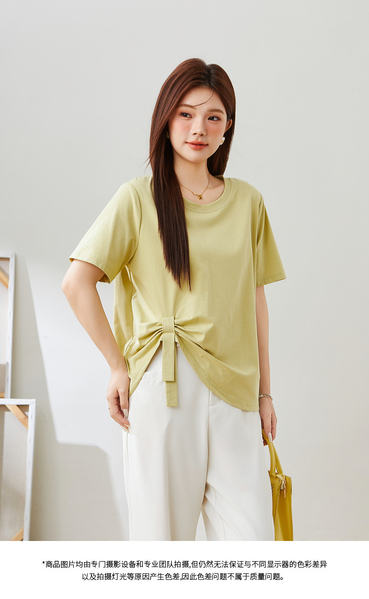 Caiduobao プラスサイズの女性のファット mm2025 夏の新しい不規則なリボンデザインスリム T シャツ EXZ5369