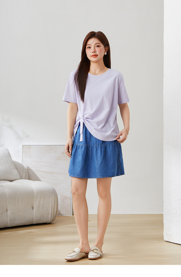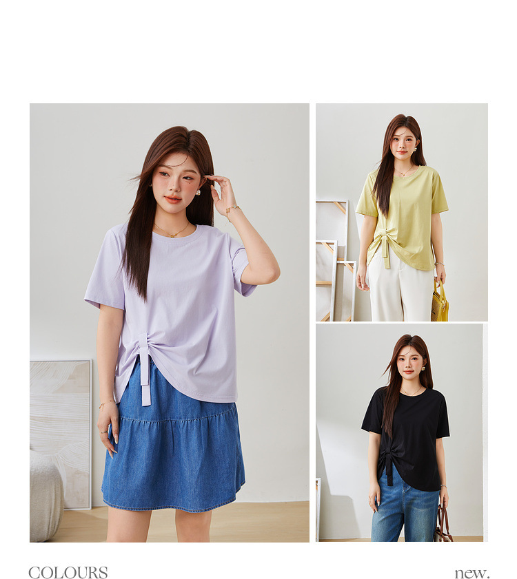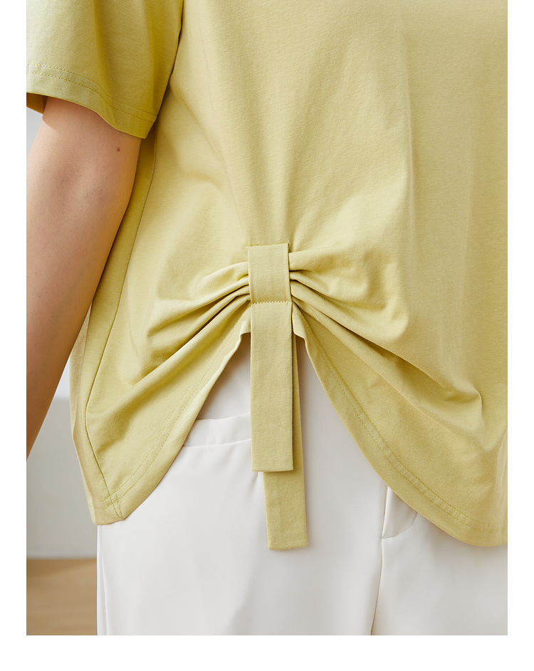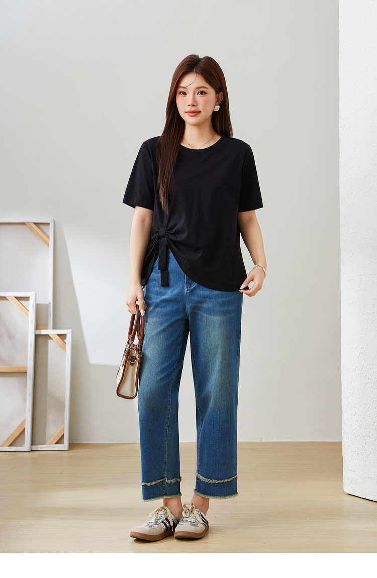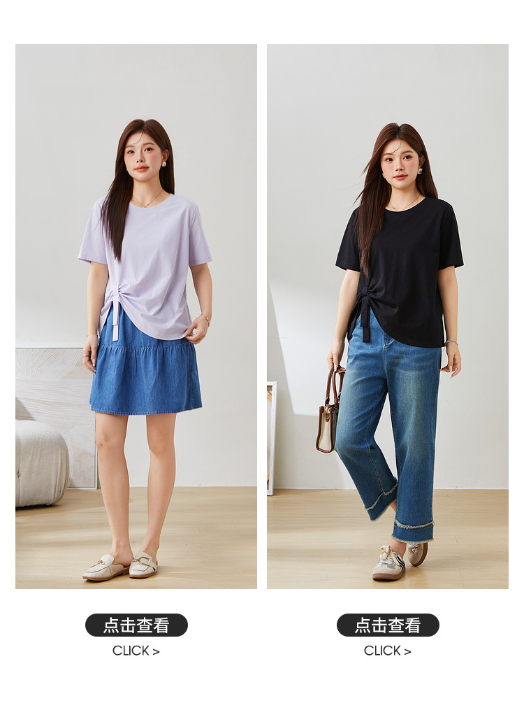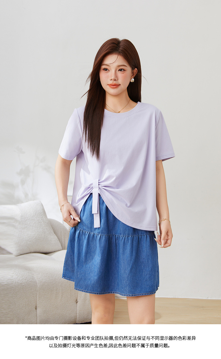Caiduobao プラスサイズの女性のファット mm2025 夏の新しい不規則なリボンデザインスリム T シャツ EXZ5369