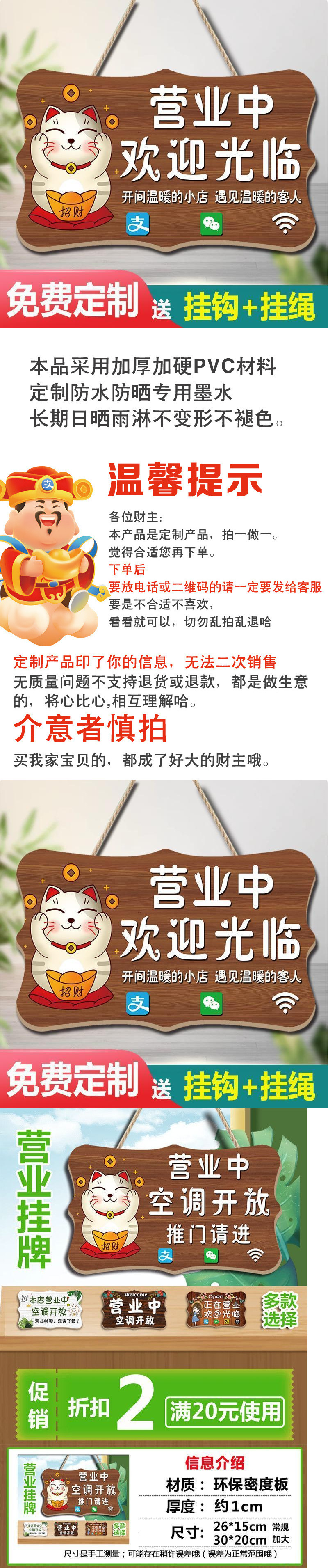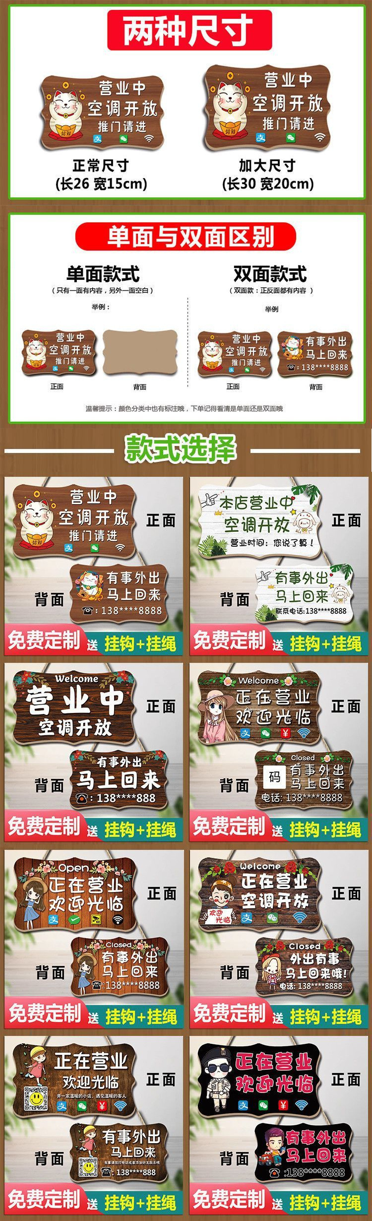 営業中のお店へようこそ両面表示、外出してもすぐに戻ってきます、エアコンオープン表示