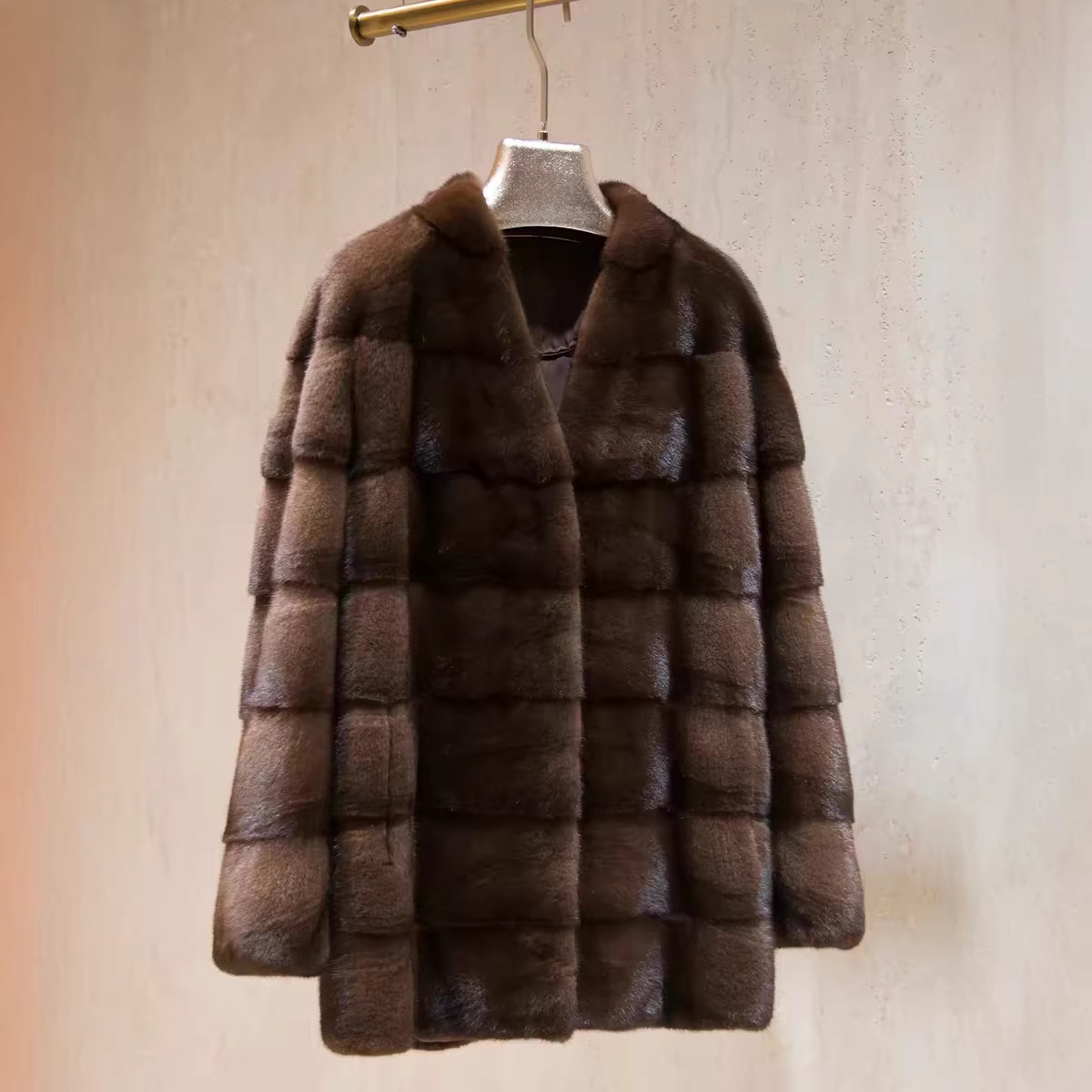 新款进口天鹅绒貂皮大衣女整貂年轻款时尚短款横排水貂毛皮草外套