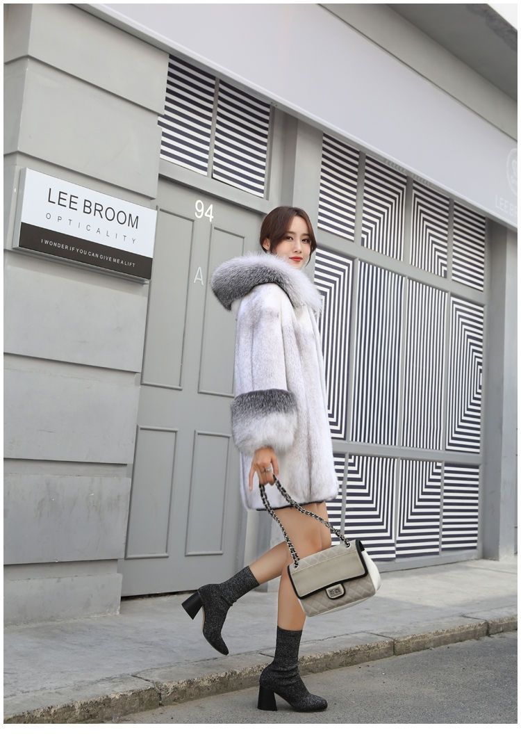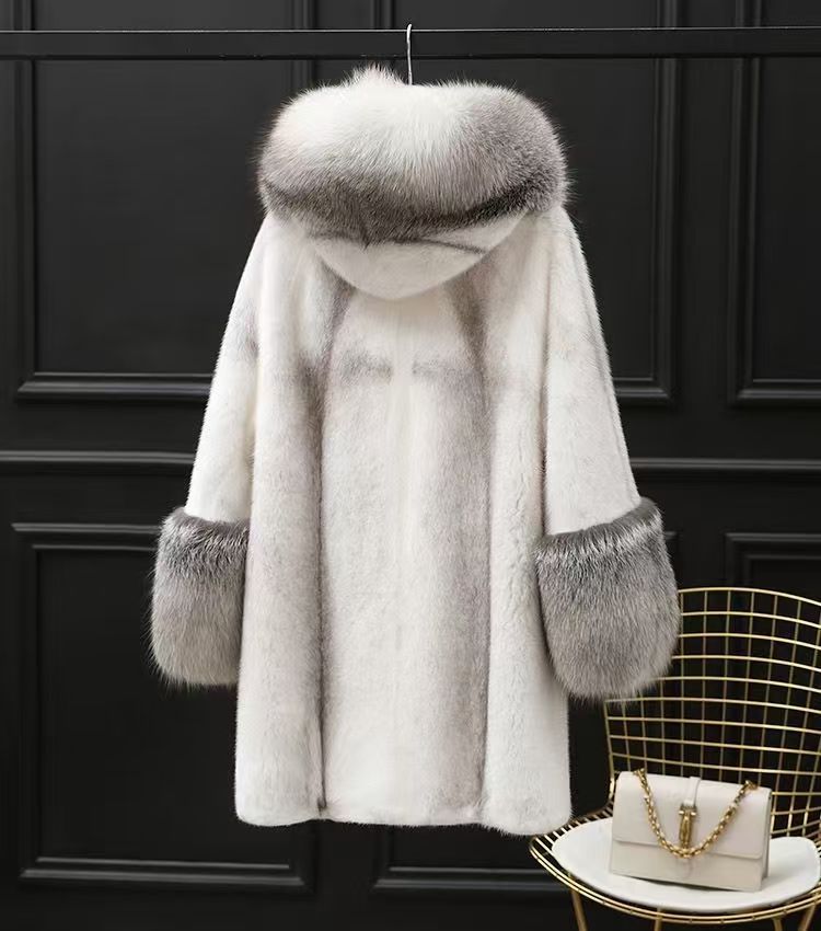 クロスミンクファーの襟,クロスミンクフード付きスタイル
