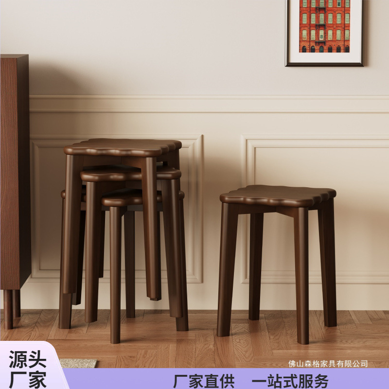 無垢材のスツール、家庭用積み重ね可能な小さなベンチ、丈夫で耐久性のあるダイニングテーブルのハイスツール、モダンでシンプルな丸いスツール、木製の正方形のスツール