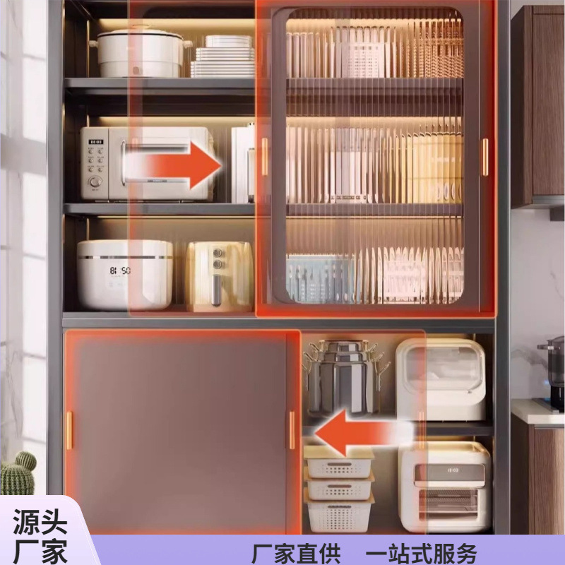 キッチンラックキッチン引き戸多層ポットとボウル収納キャビネット多機能床置き収納キャビネット炭素鋼