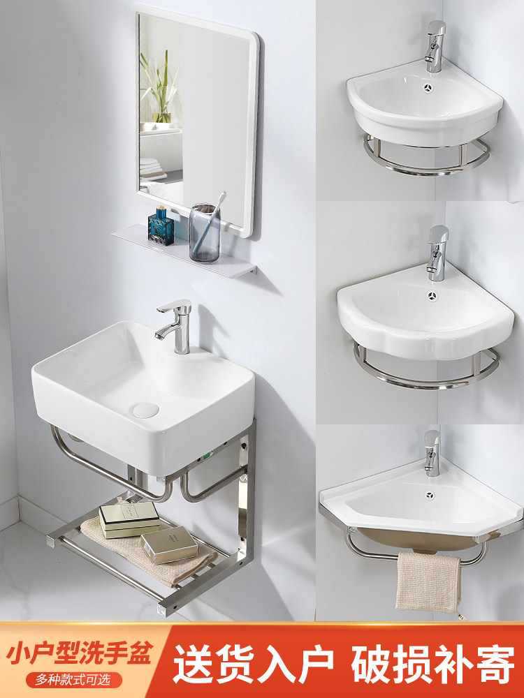 陶瓷挂墙式三角洗手盆小户型家用转角洗脸盆迷你超窄卫生间洗漱台
