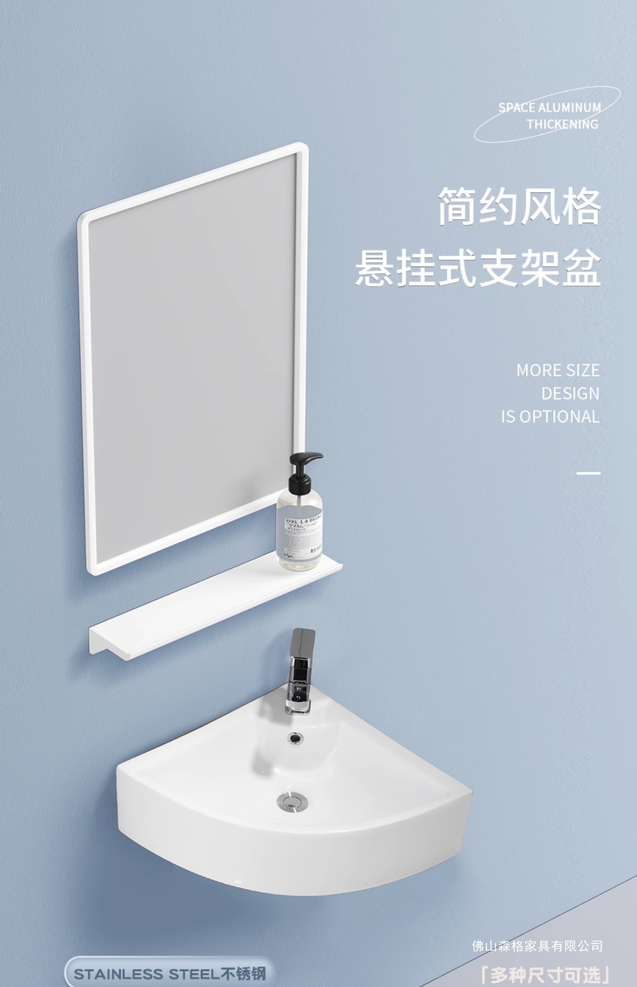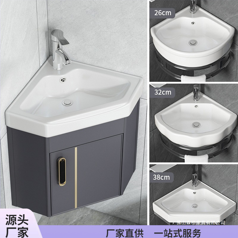 三角形挂墙式洗脸盆浴室柜组合小户型转角洗漱台阳台迷你洗手盆