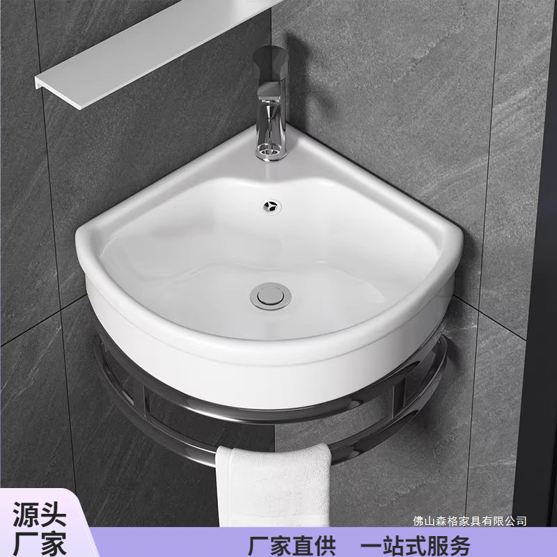 三角形面盆墙角支架洗脸盆小户型挂墙式大尺寸转角陶瓷洗手盆扇形