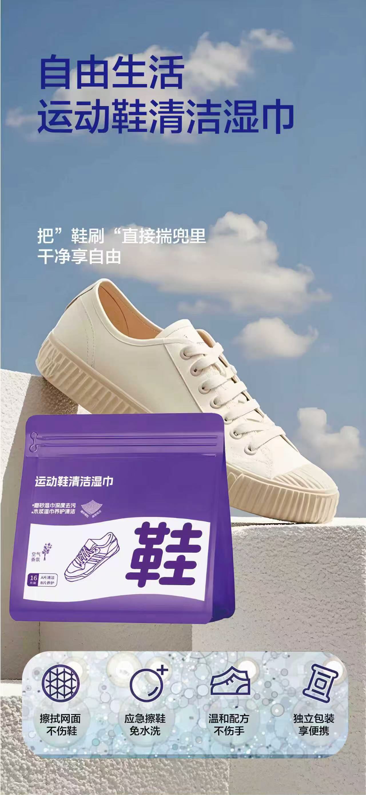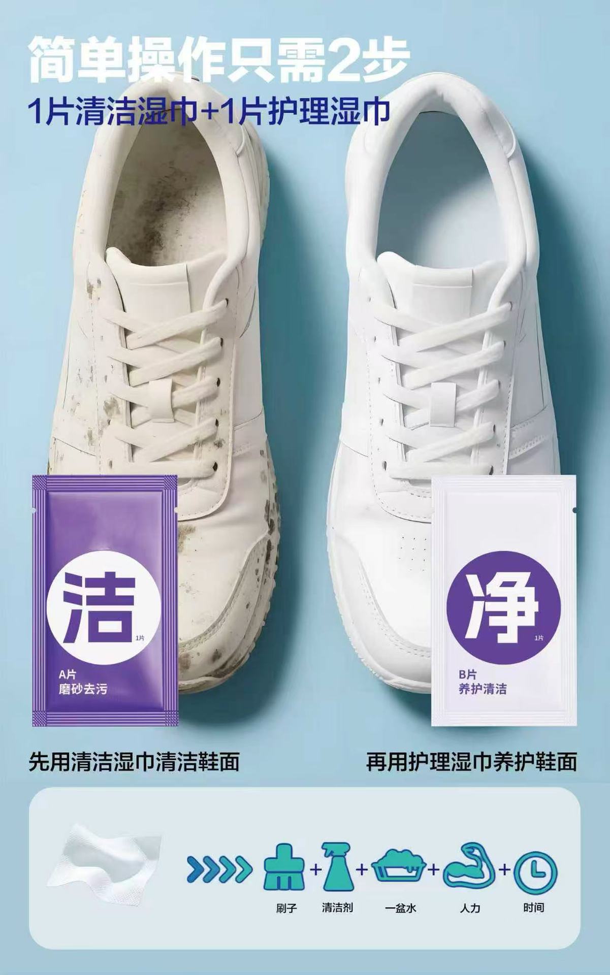 擦鞋湿巾去污清洁湿巾擦鞋旅游擦鞋免洗去黄小白鞋湿巾一次性湿巾