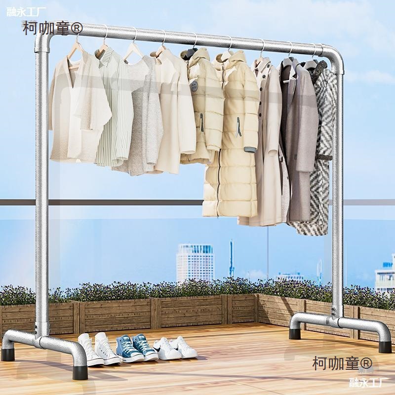 亜鉛メッキ鋼管衣類乾燥ラック床置き家庭用バルコニー衣類吊り屋外屋外シンプルな二本ロッド水道管衣類乾燥ラック Metabo