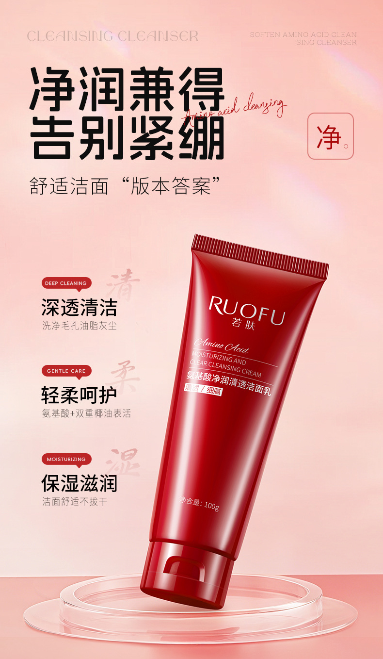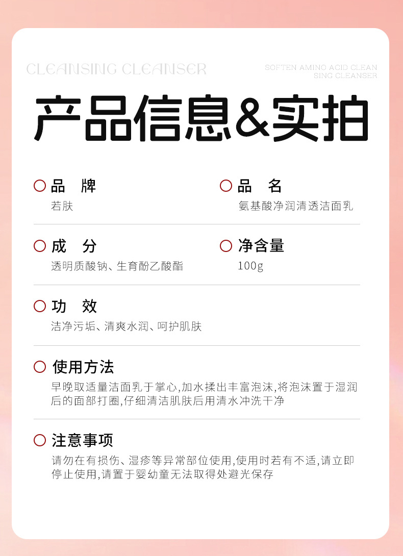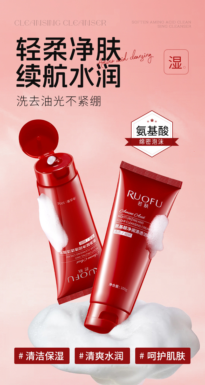 若肤氨基酸净润清透洗面奶洁面乳补水洗面奶补水保湿深层清洁毛孔