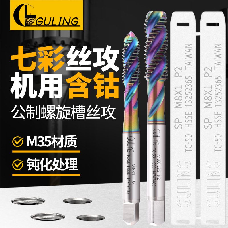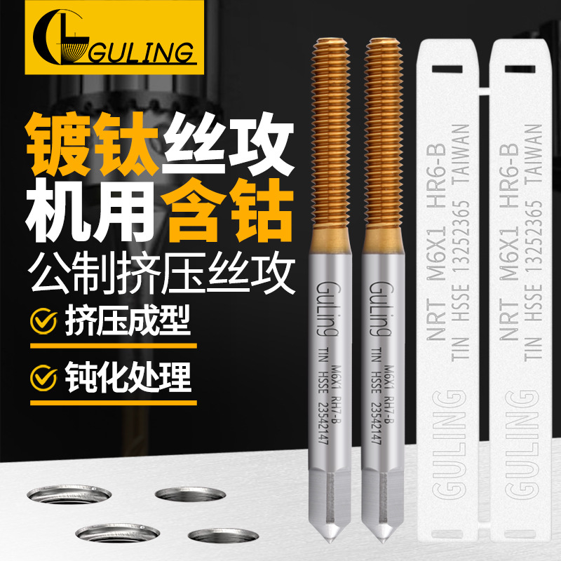 GULING チタンコーティングコバルト入り機械用押出タップ M0.5/2/4/8/-M18*1 ステンレス鋼用細目タップ