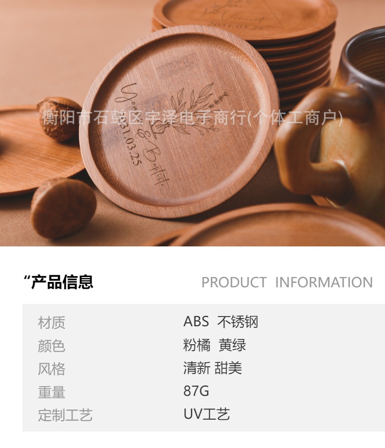 Etsy希音TUMU 跨境定制logo 竹木杯垫套装简约创意茶道杯托圆形垫