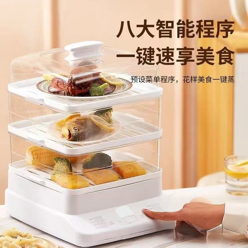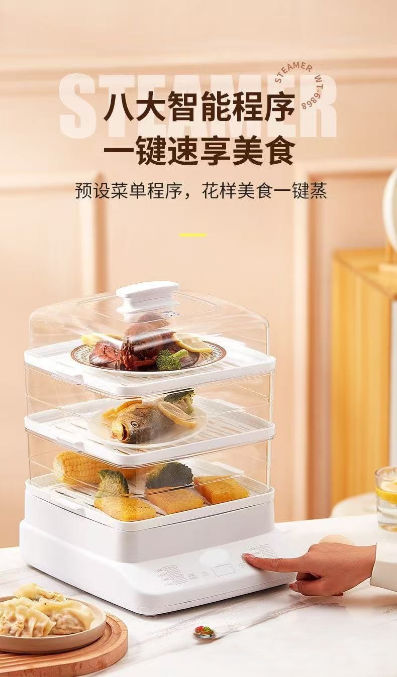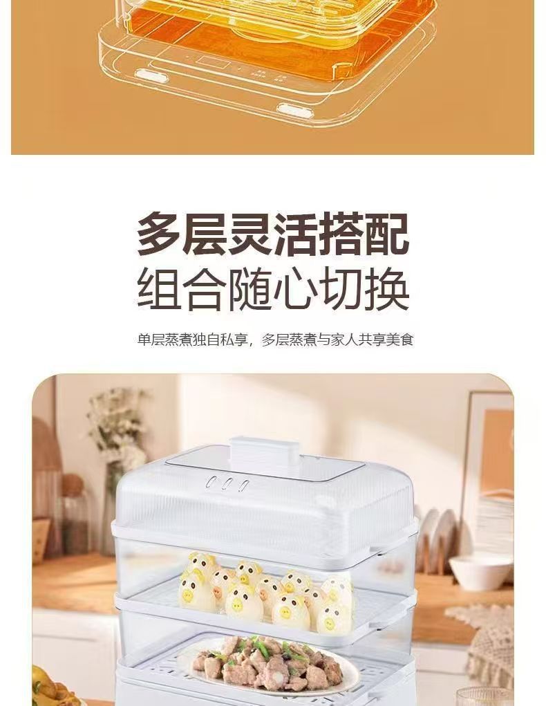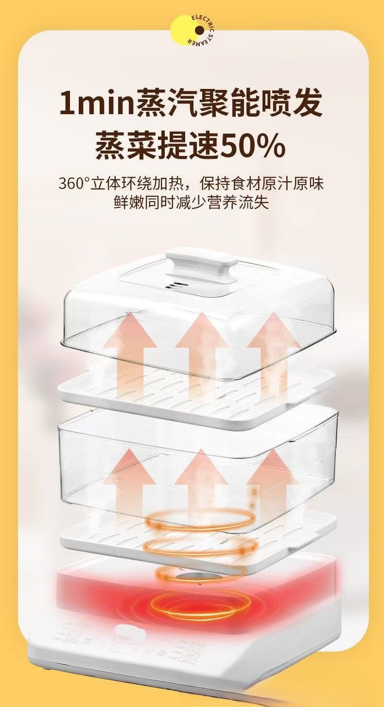 万利達 上下蒸し電気蒸し器 自動電源オフ 一体型大容量蒸し器 家庭用多機能蒸し器