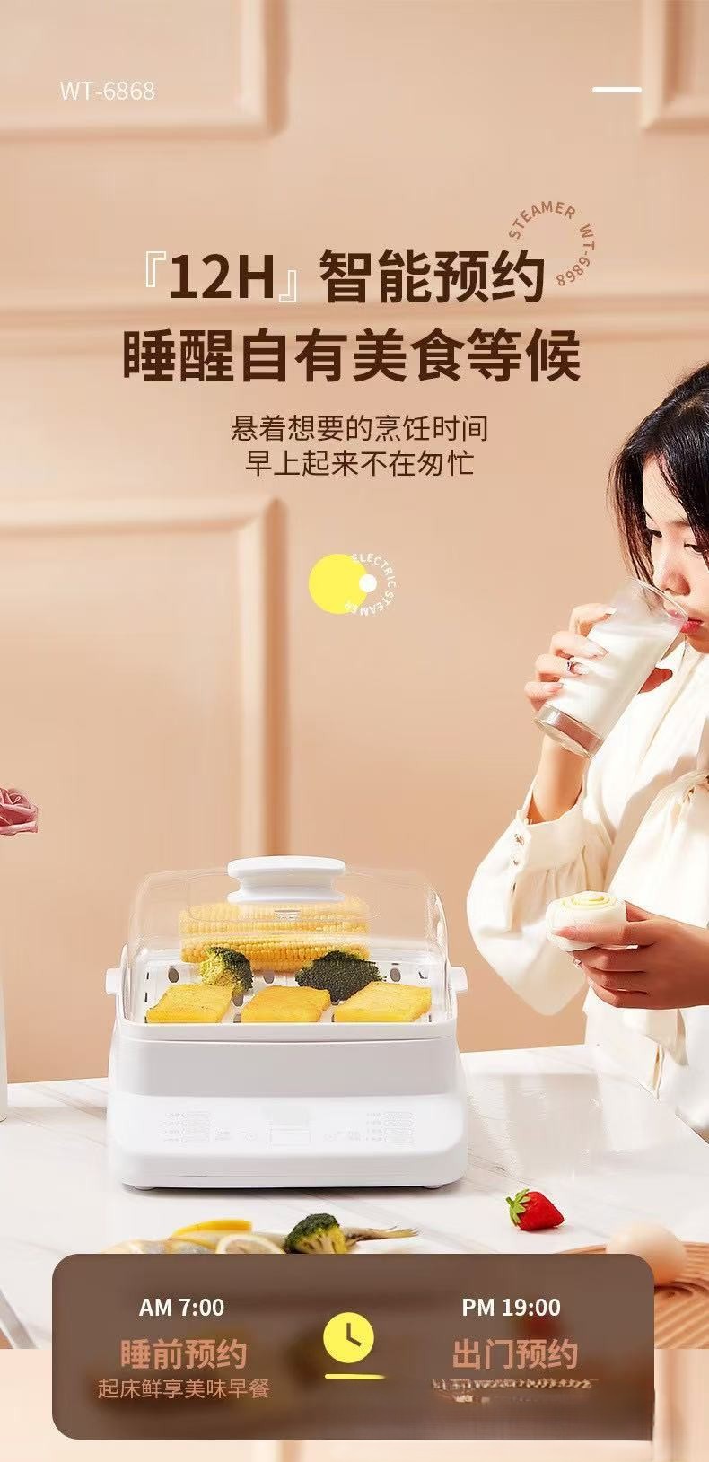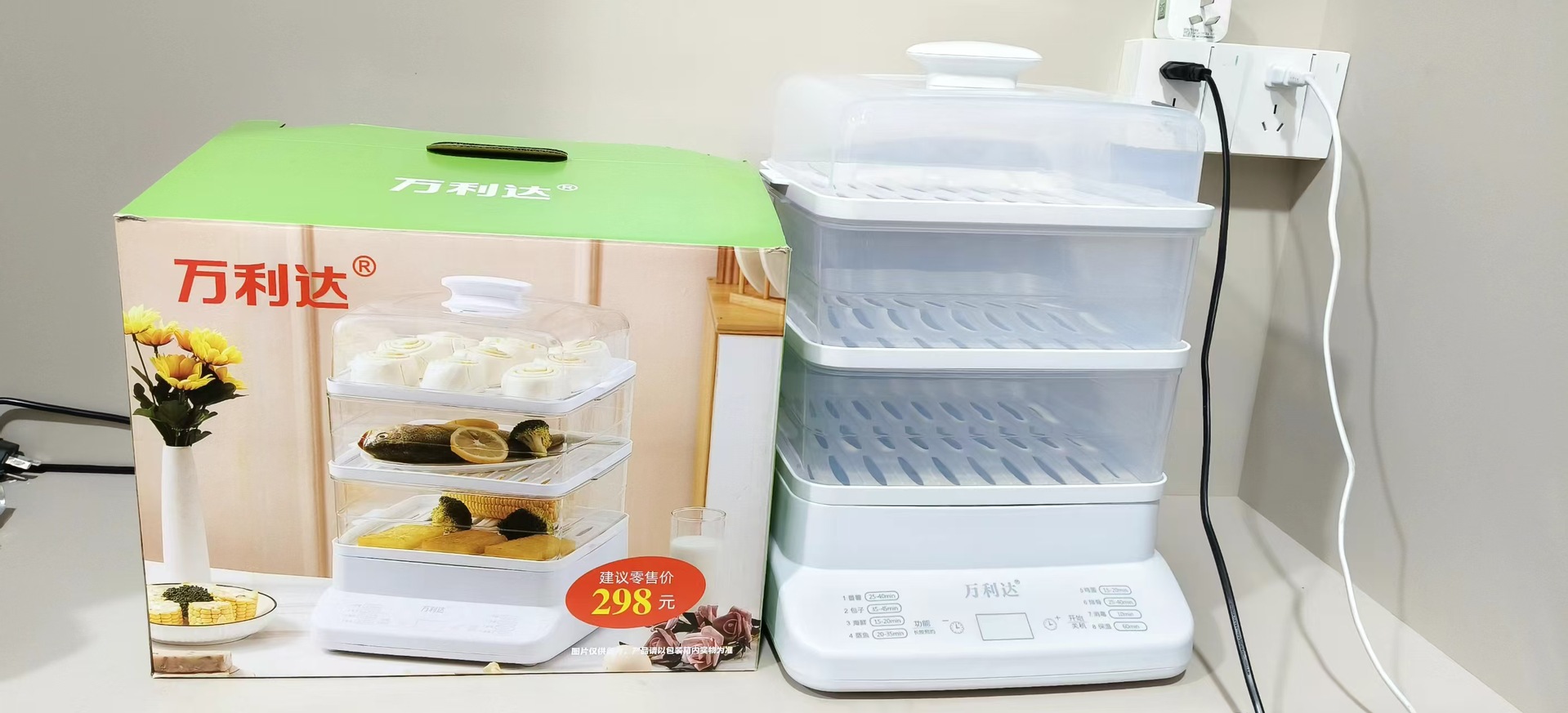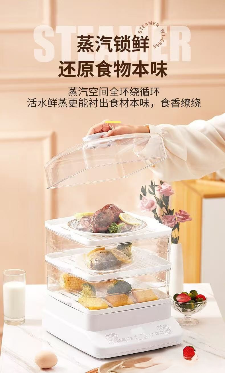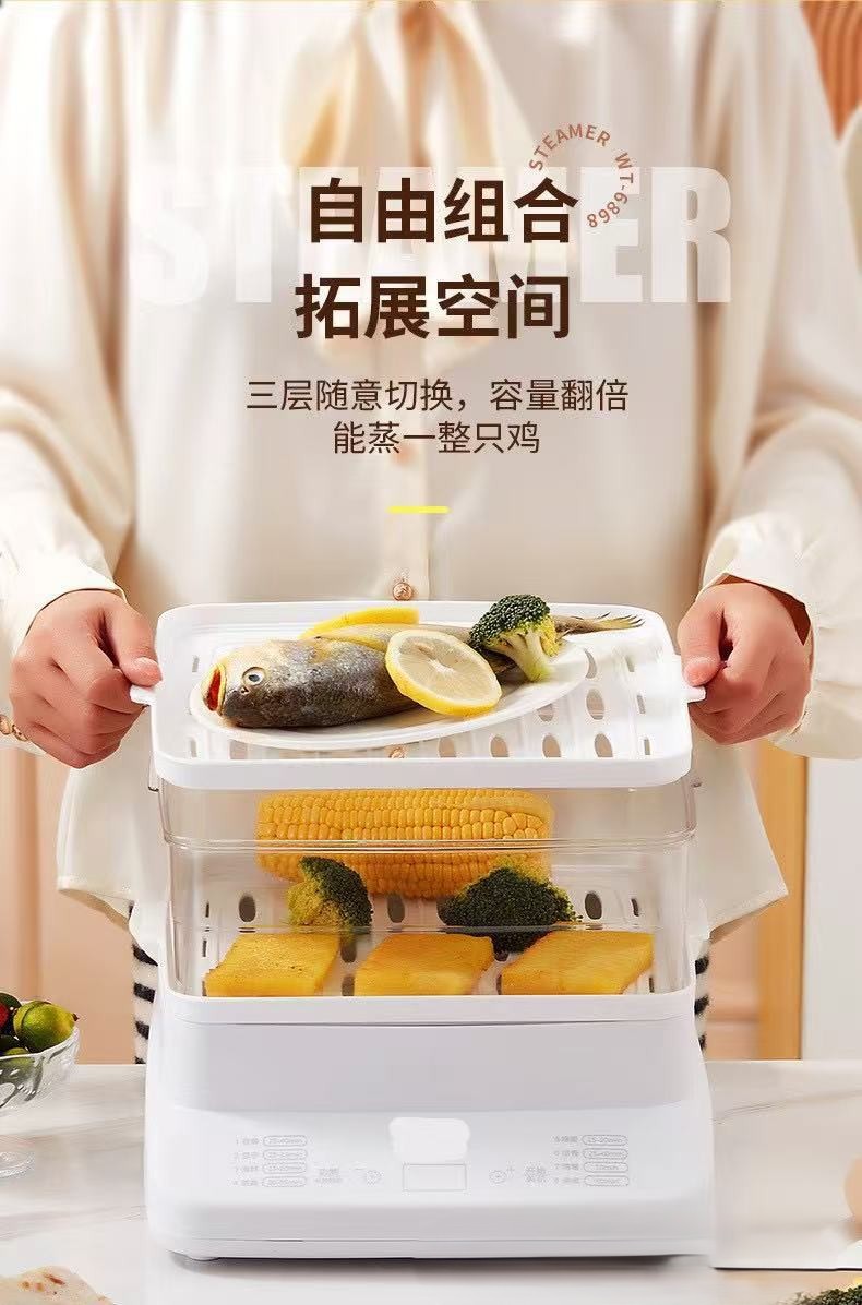 万利達 上下蒸し電気蒸し器 自動電源オフ 一体型大容量蒸し器 家庭用多機能蒸し器