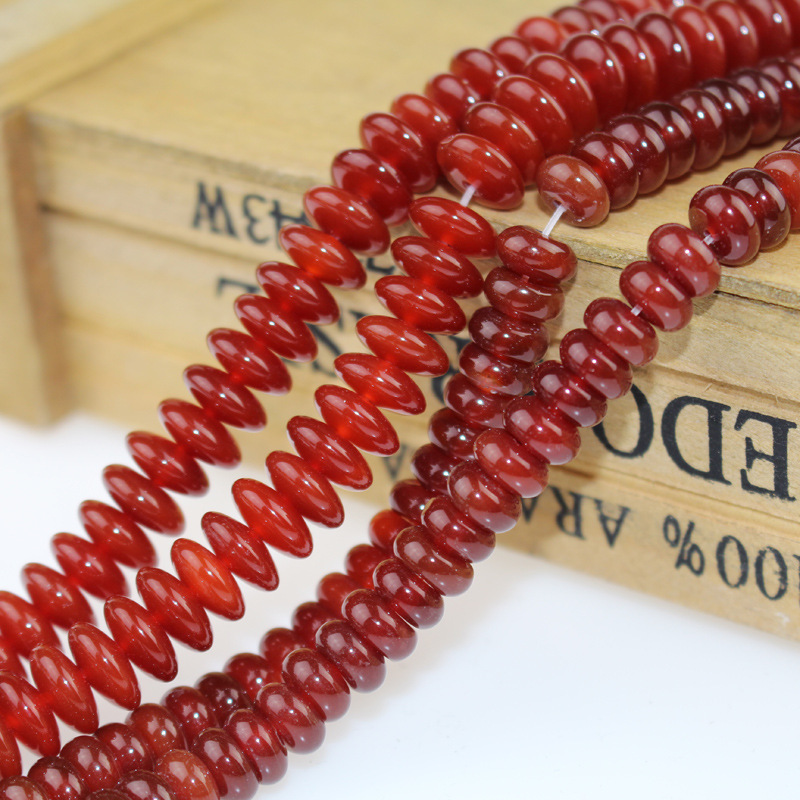 天然紅瑪瑙盤珠散珠スペーサーdiy手作りビーズブレスレットネックレスアクセサリー材料スペーサー