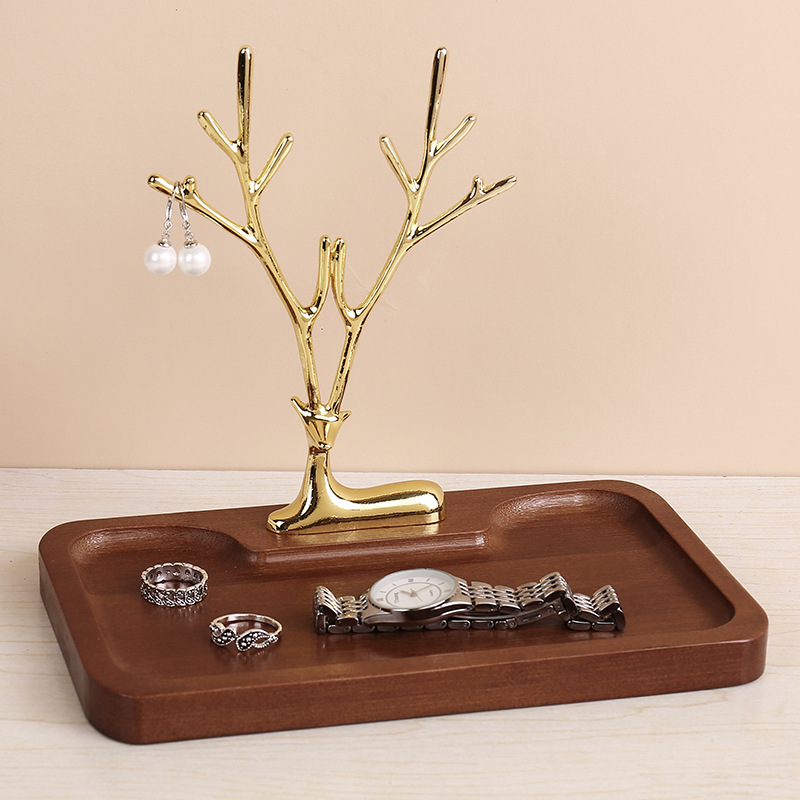 复古竹木首饰收纳架托盘家用卧室玄关钥匙香薰置物桌面装饰展示架