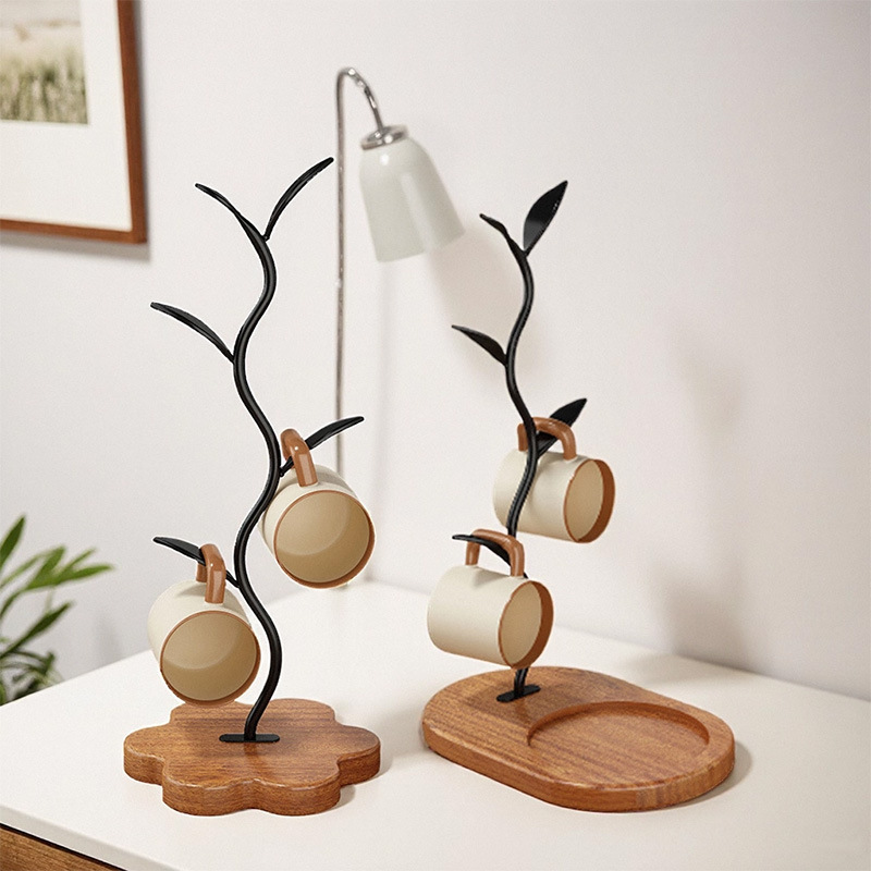 カップホルダー水カップホルダー水切り家庭用リビングルーム実木質創意高級感軽豪華コーヒーカップ収納棚