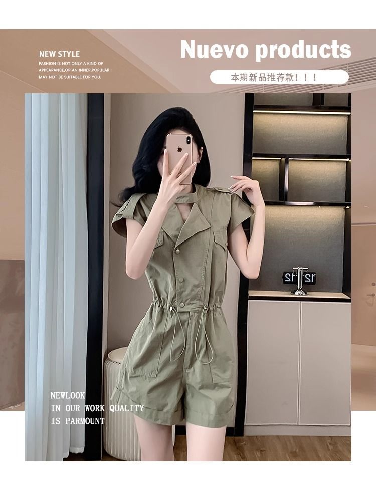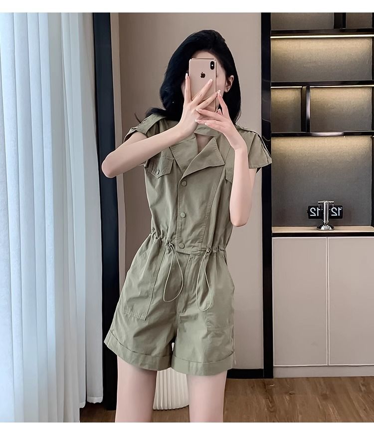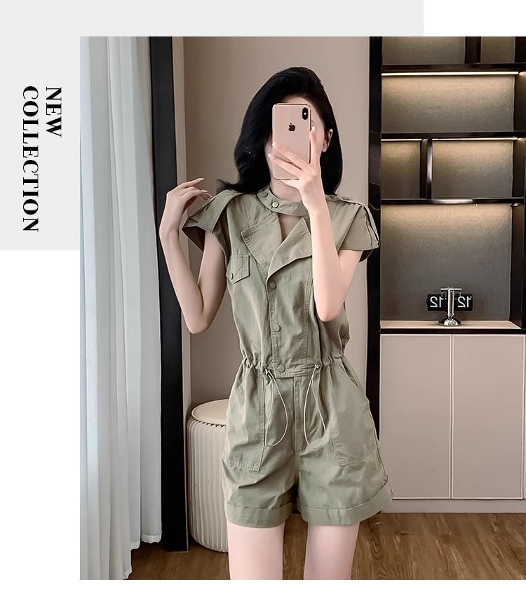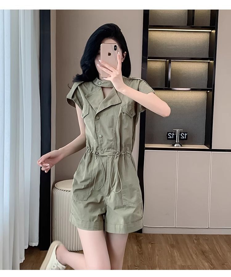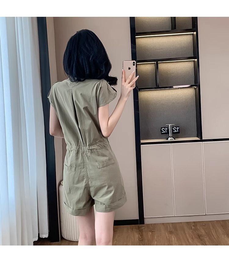 作業服ジャンプスーツショーツジャンプスーツ夏薄手パンツワイドレッグ小柄ジャンプスーツスーツおしゃれジャンプスーツ