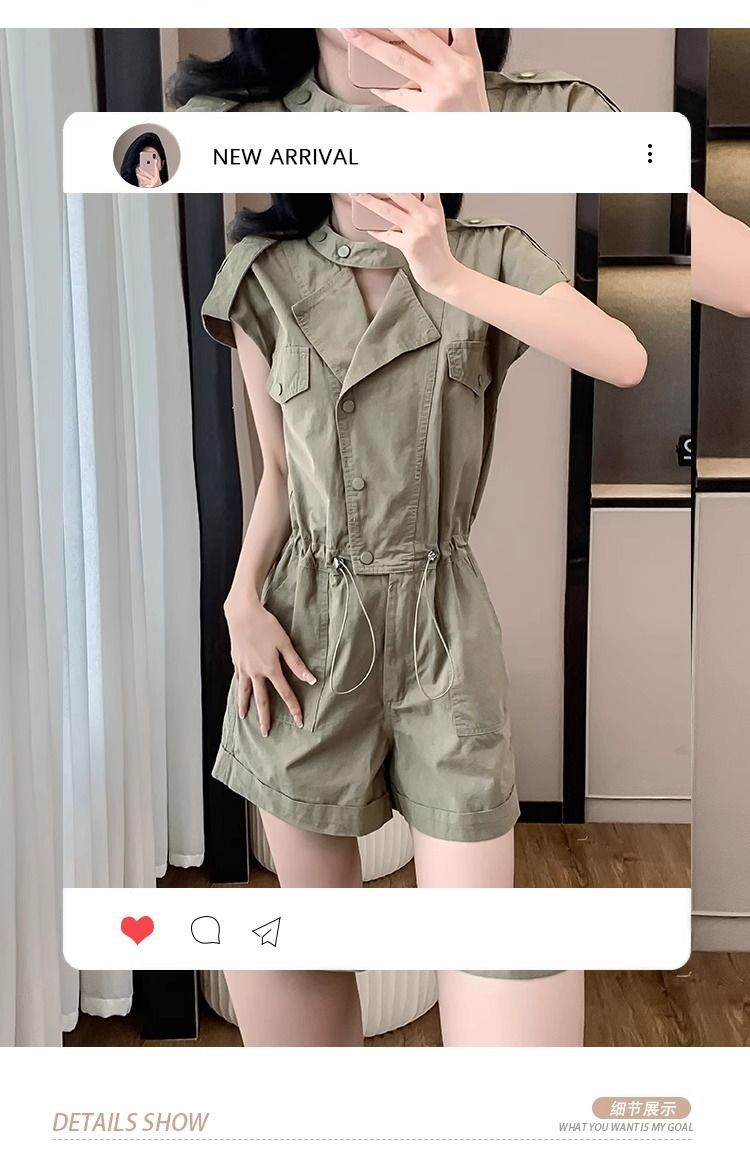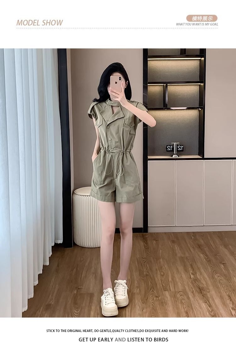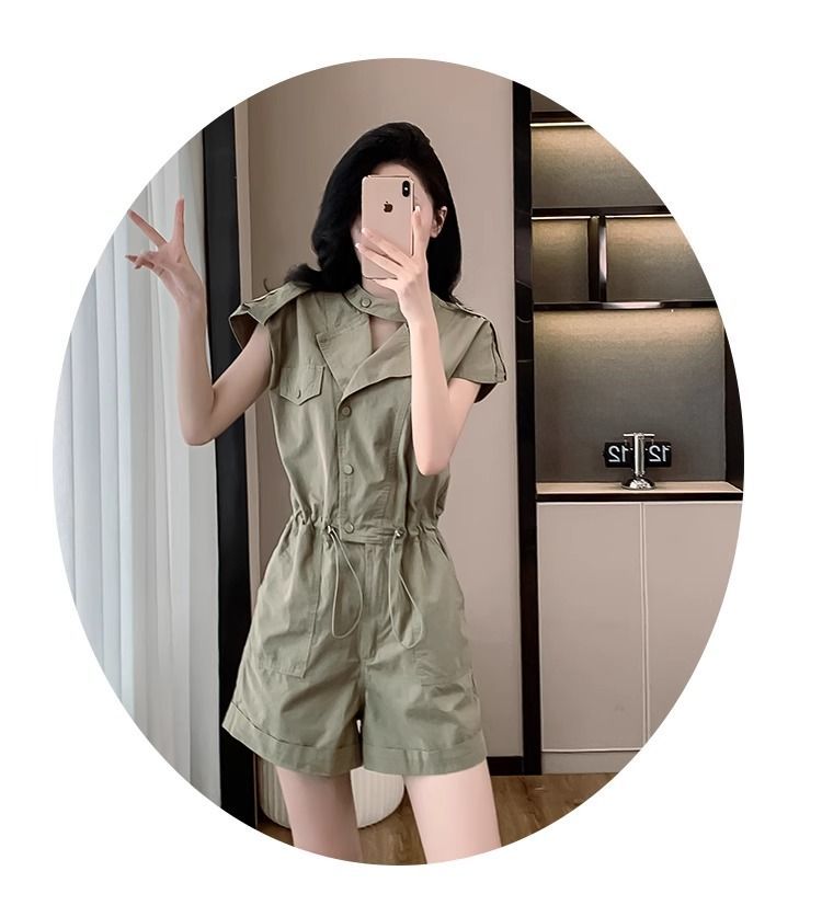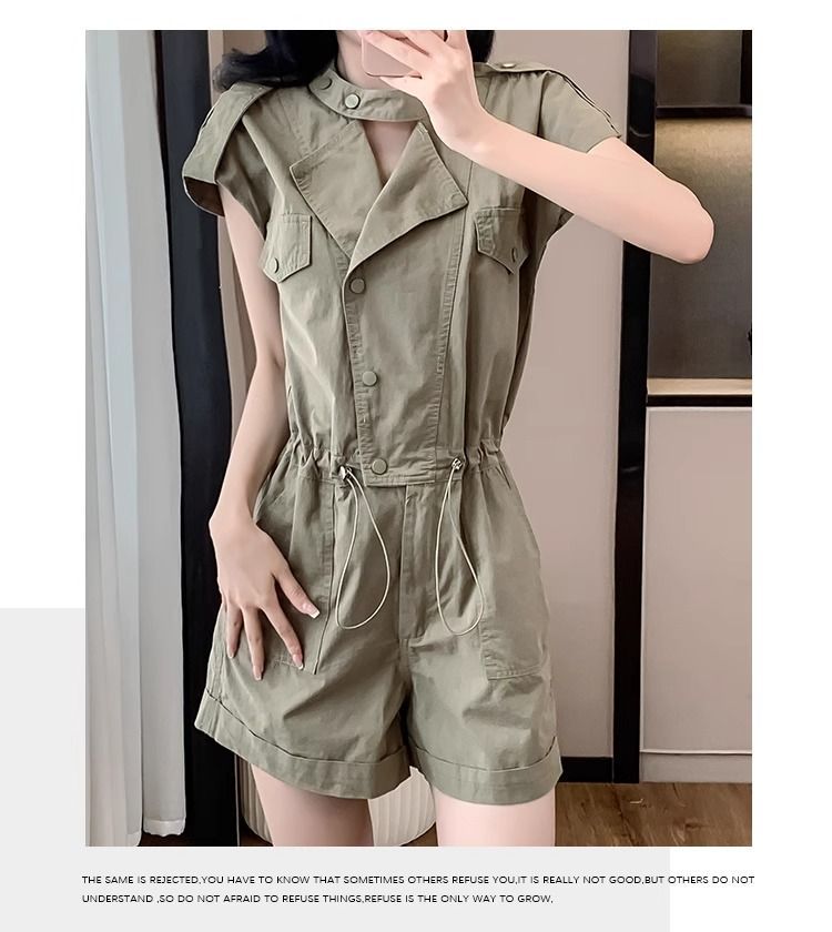 作業服ジャンプスーツショーツジャンプスーツ夏薄手パンツワイドレッグ小柄ジャンプスーツスーツおしゃれジャンプスーツ