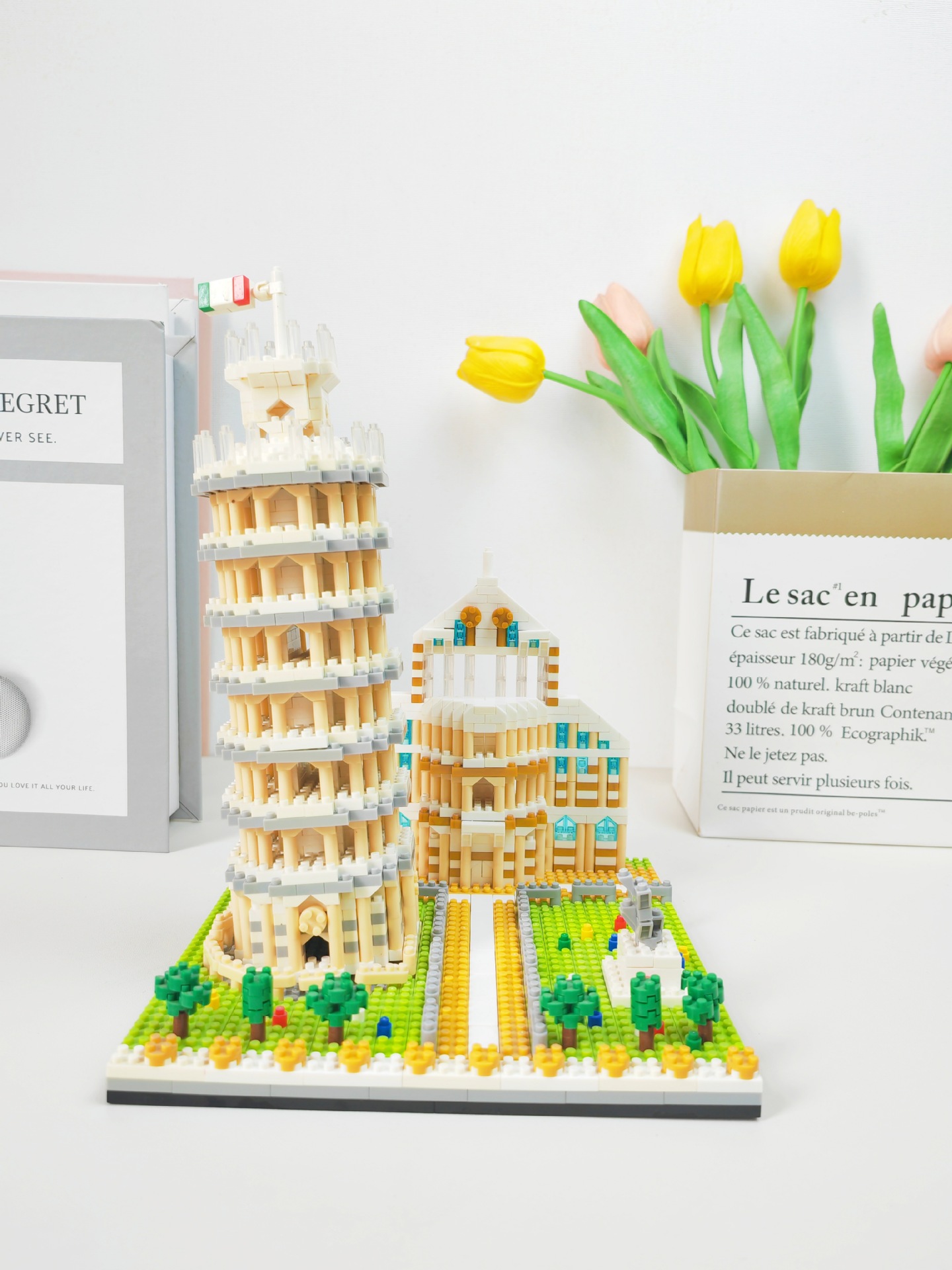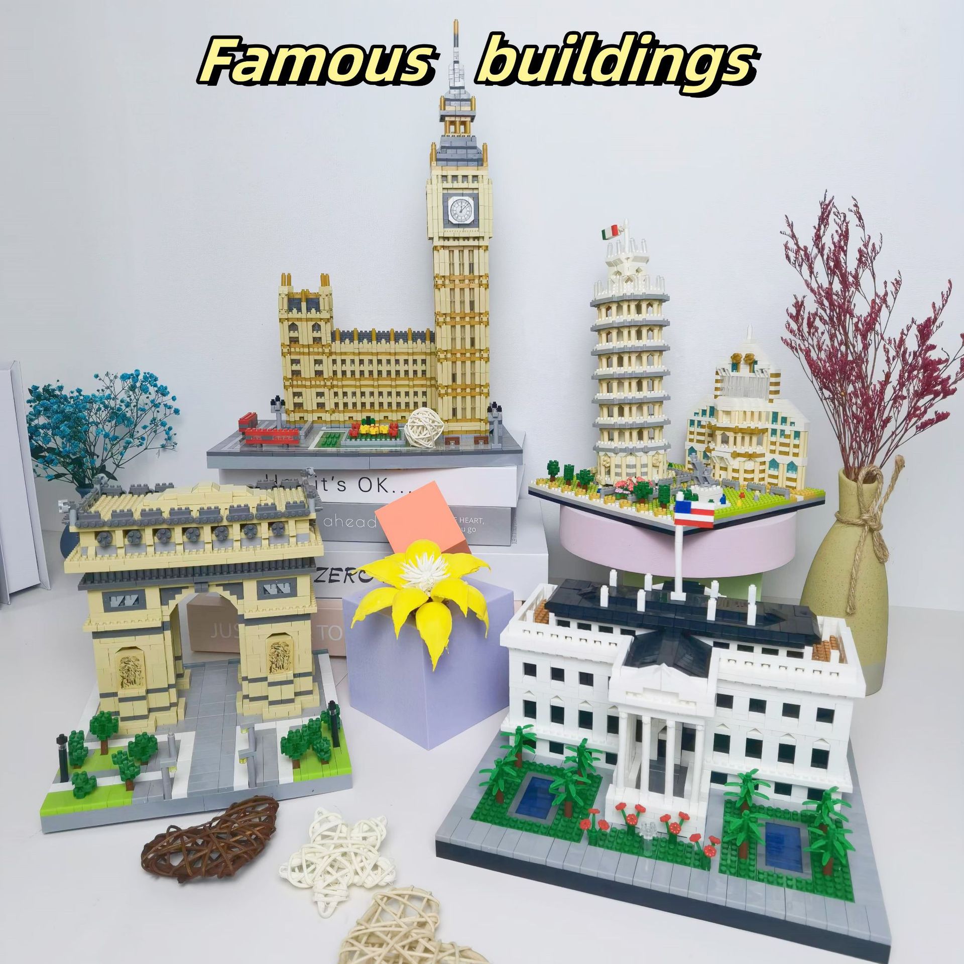 ビッグベンの積み木おもちゃ,ロンドンブリッジの積み木おもちゃ,凱旋門の積み木おもちゃ,ルーブル美術館の積み木おもちゃ,ピサの斜塔の積み木おもちゃ,古代ローマのコロッセオの積み木おもちゃ