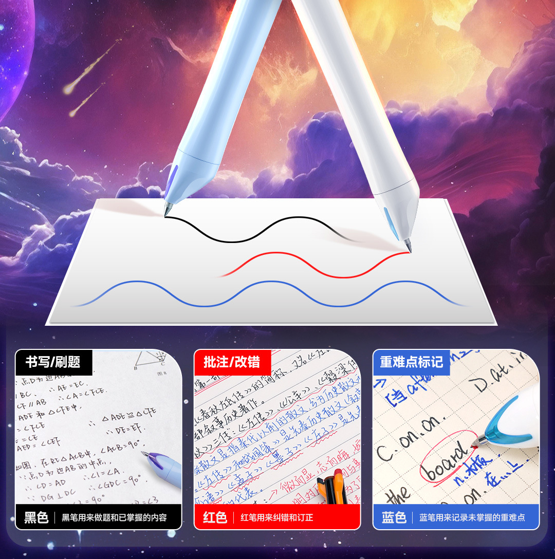 Dianshi 文具クルーズ時空カプセル 3 色ペン 0.5 ミリメートル黒赤青コア多機能大容量卸売 6254