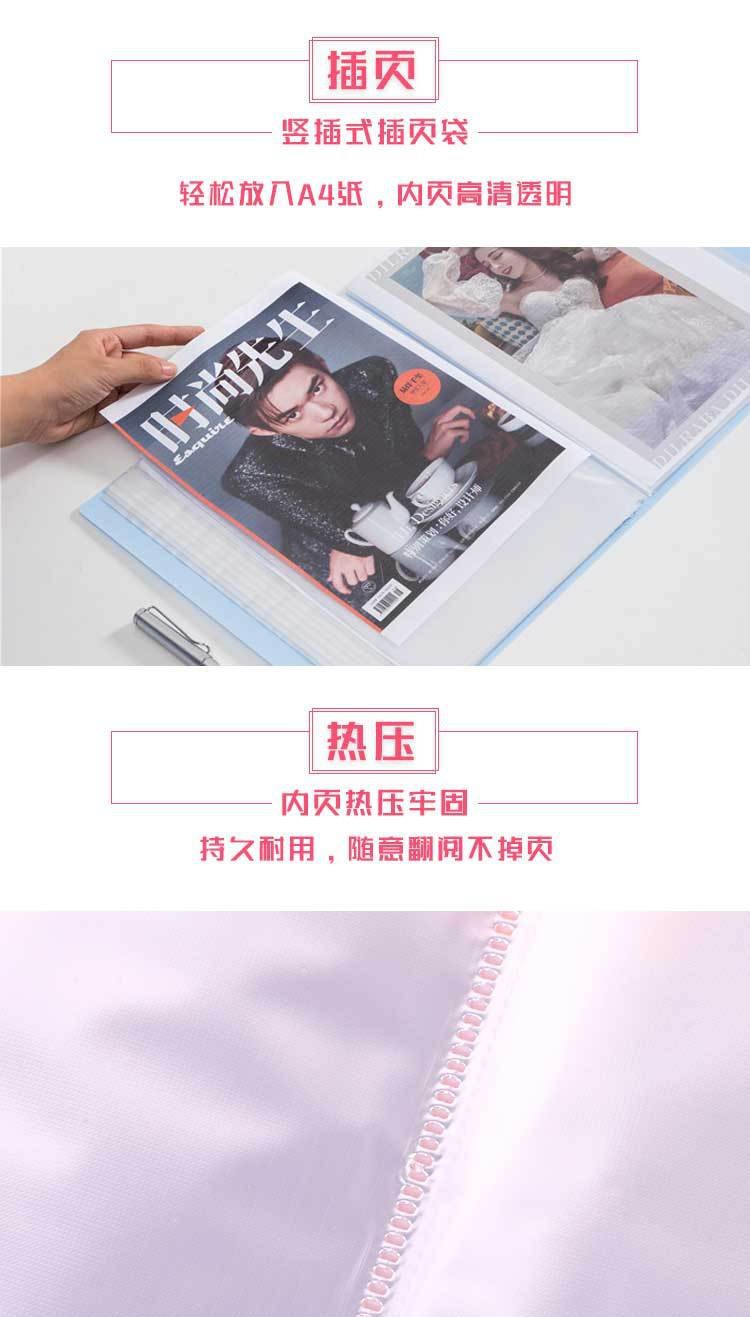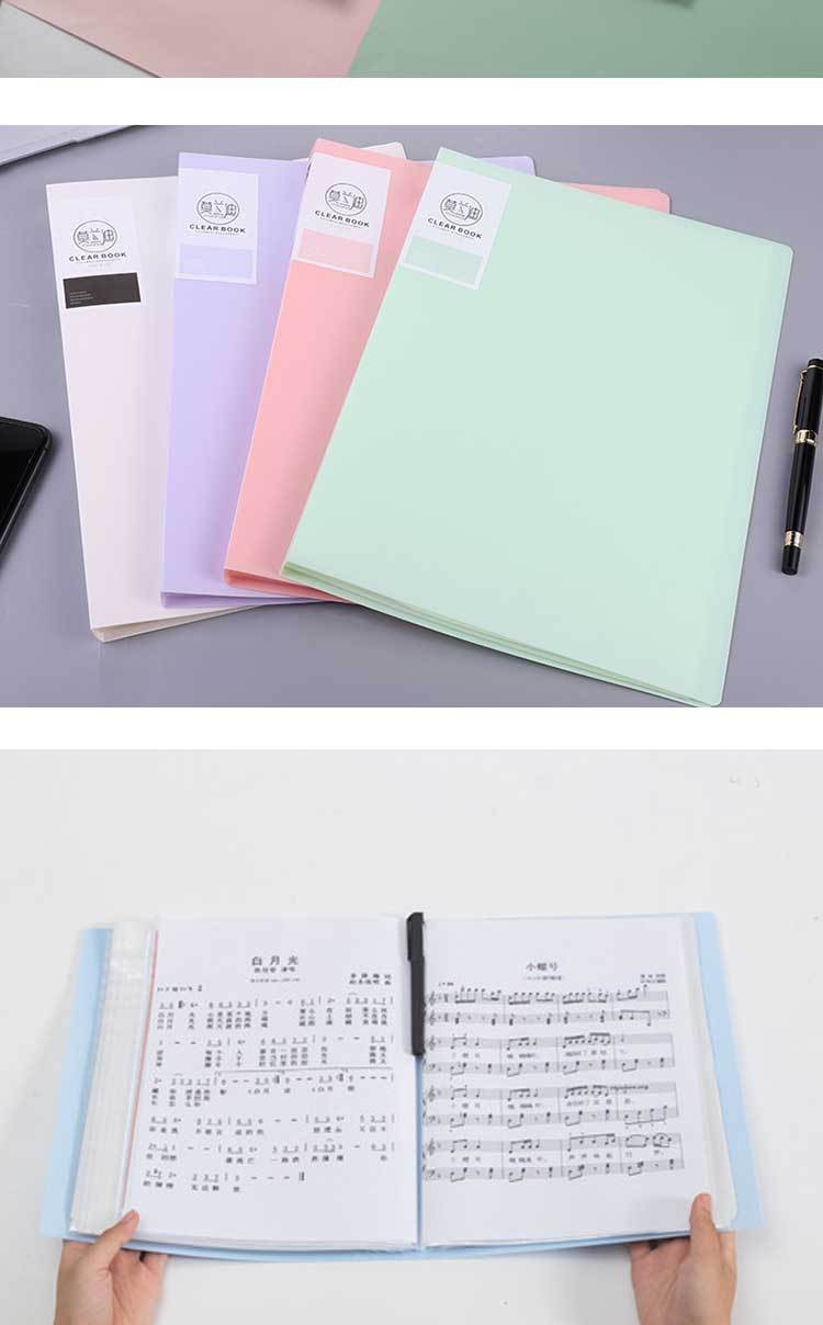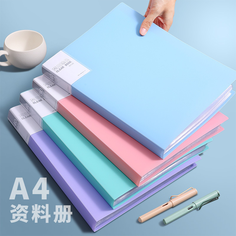 A4資料冊ファイル透明インサート賞状答案収納袋学生画帳クリップ妊娠検査収集冊