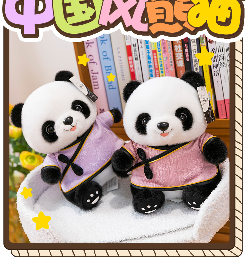 新しい中国風のパンダぬいぐるみ漢服ジャイアントパンダ人形動物園の装飾品ギフトかわいいパンダ