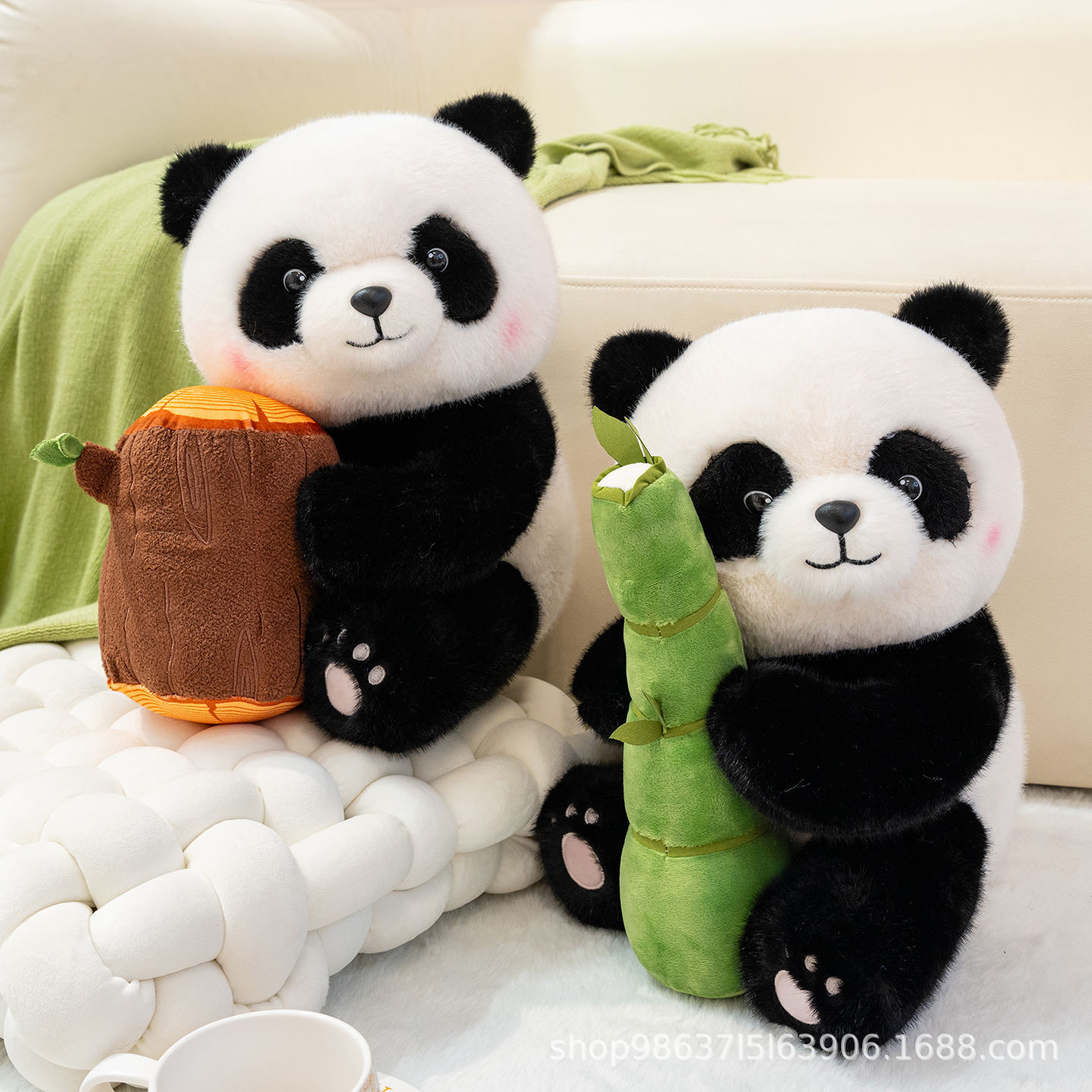 国宝雨伞抱树墩苹果竹子熊猫毛绒玩具公仔布娃娃儿童男女生日礼物