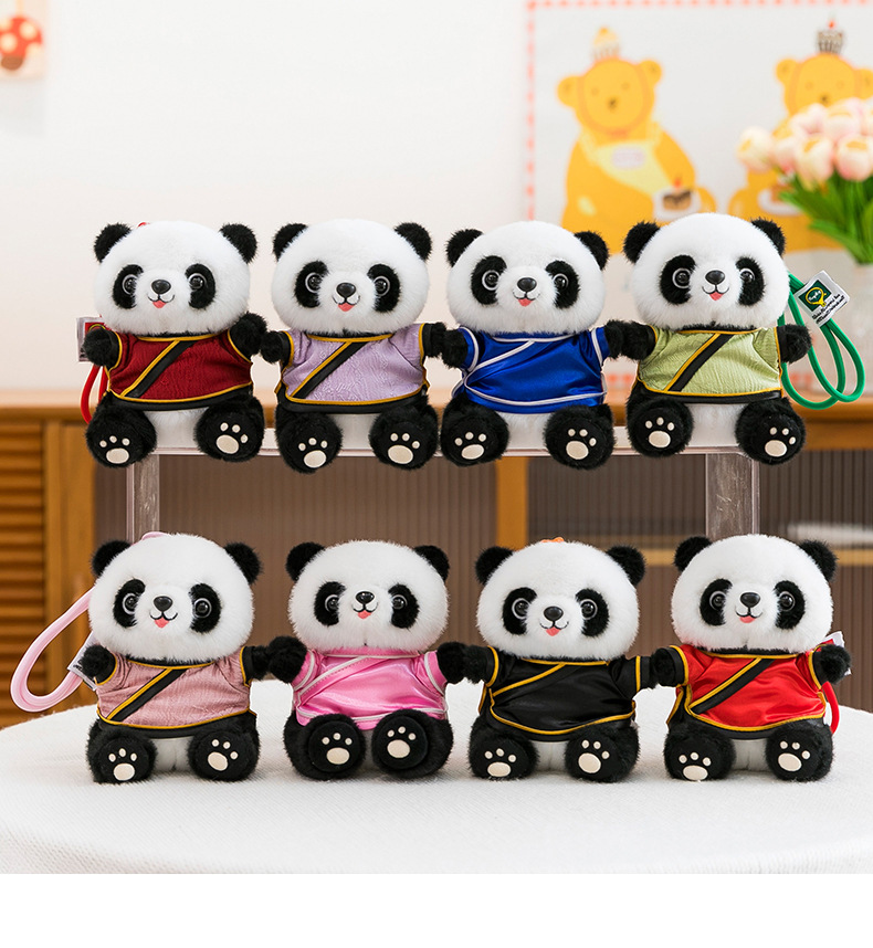 かわいい唐装漢服パンダ人形ぬいぐるみ国風パンダペンダント人形成都パンダ置物バッチ