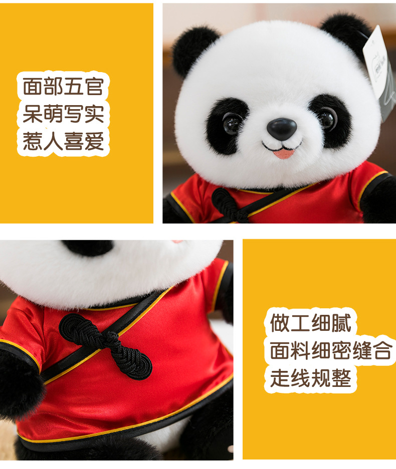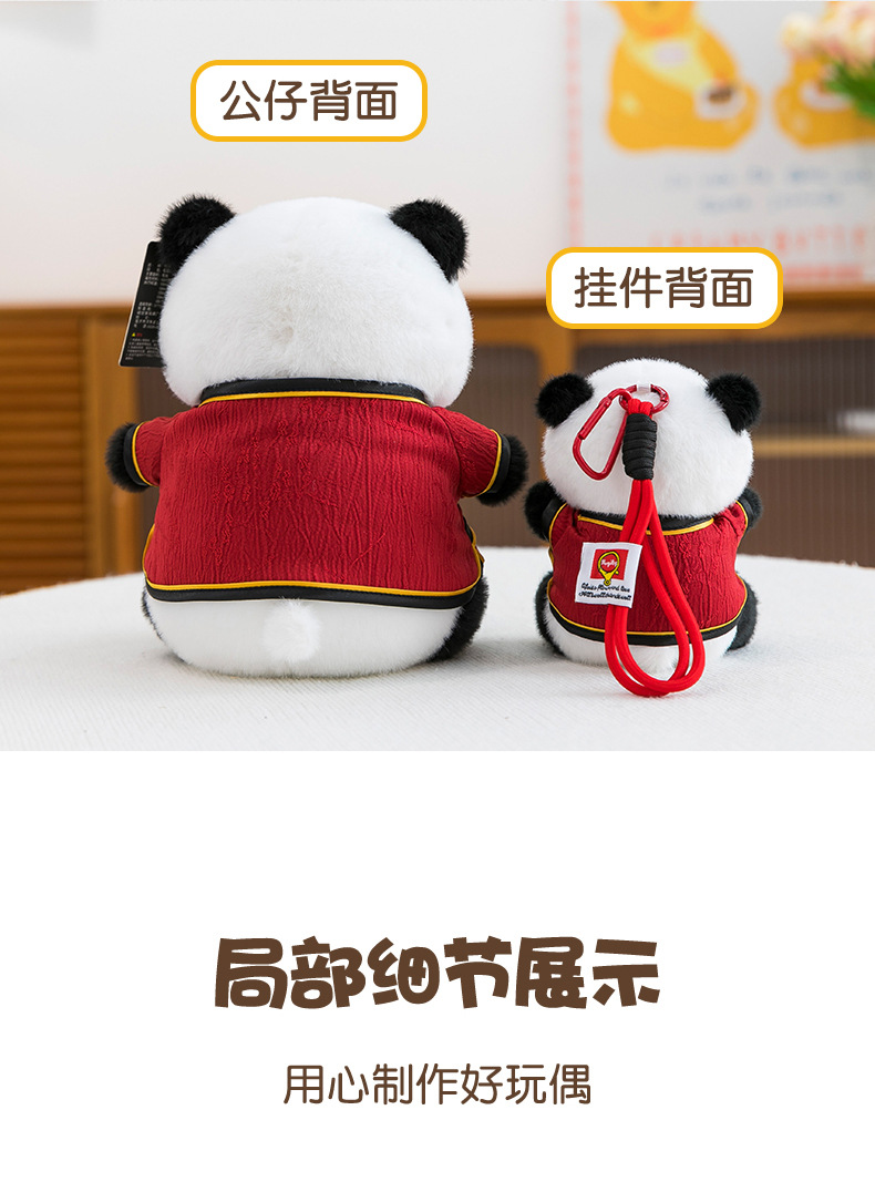 元旦国风熊猫公仔唐装汉服毛绒玩具 礼物挂件 10件起订 安全材质