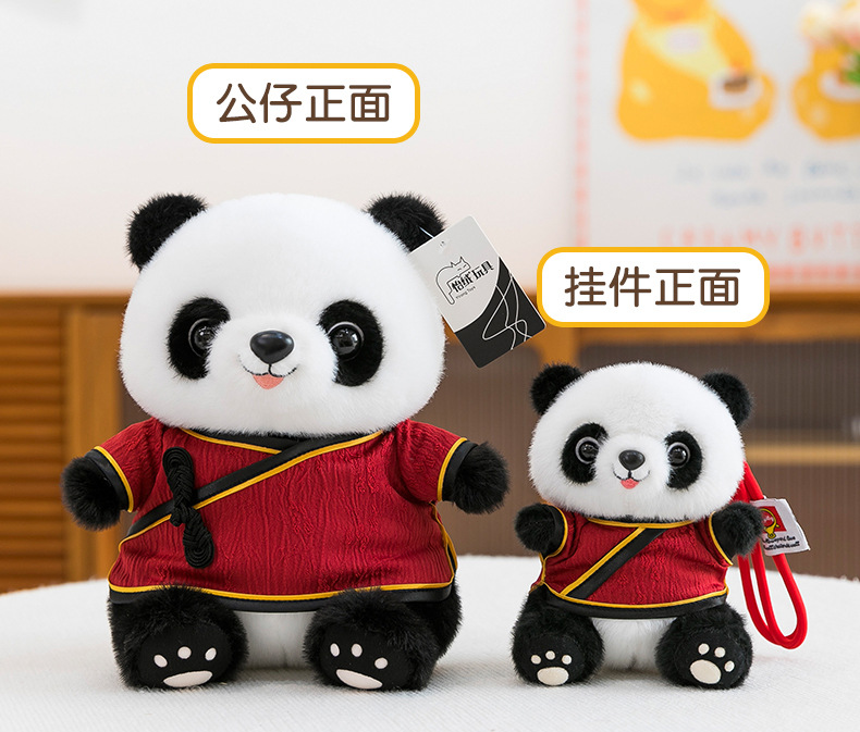 可爱唐装汉服熊猫玩偶毛绒玩具国风大熊猫挂件公仔成都纪念品批发