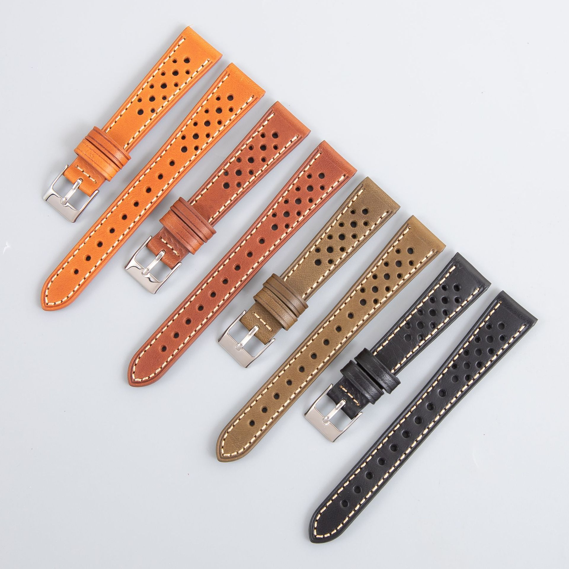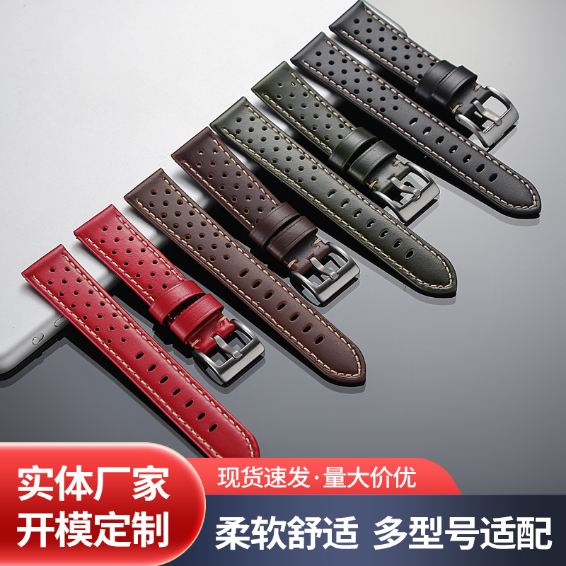 新款意大利牛皮表带18 20 22 mm多孔透气真皮手表带批发