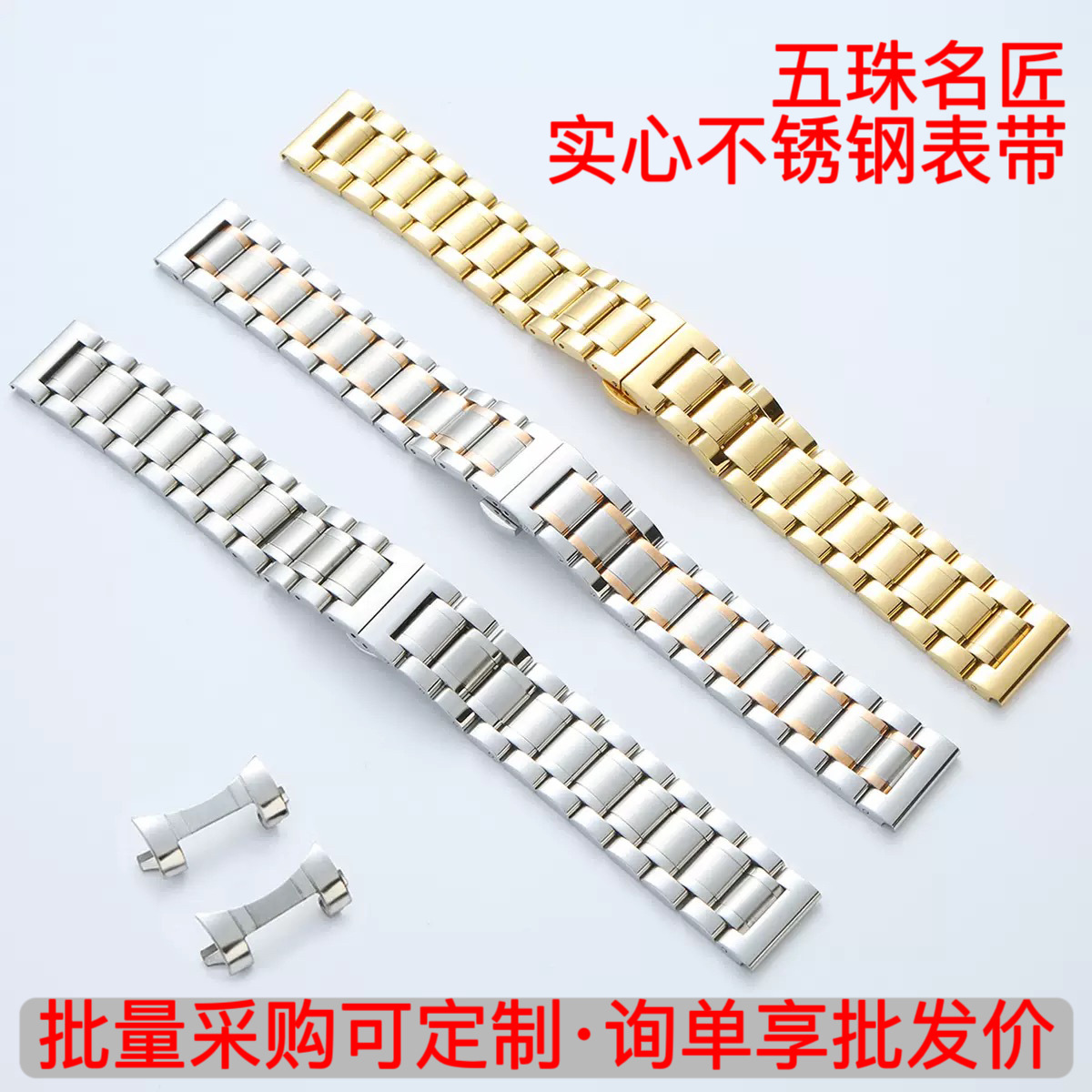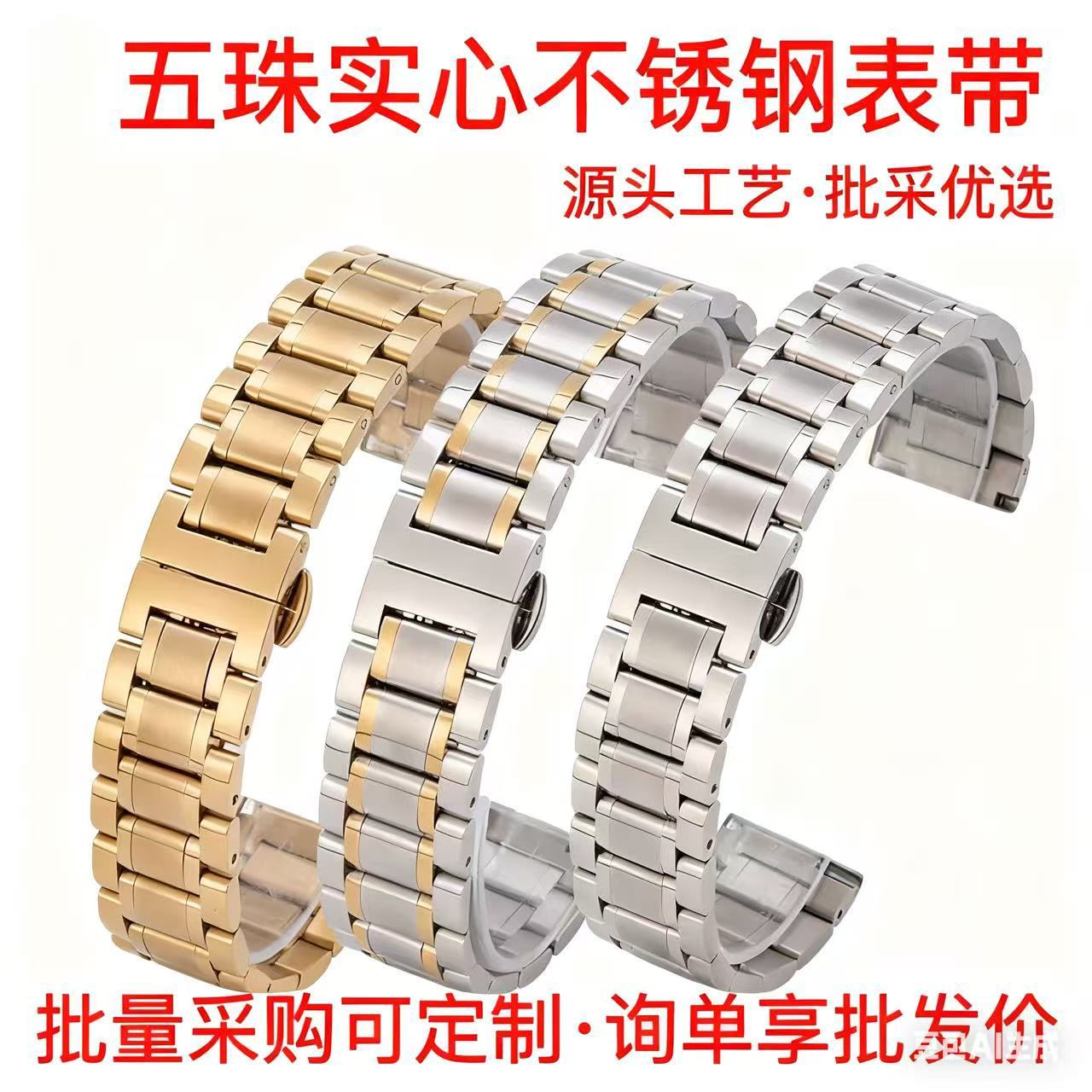 工場直販 五珠名匠モデル ソリッドステンレススチール時計バンド ソリッドステンレススチール腕時計バンド まとめ買い