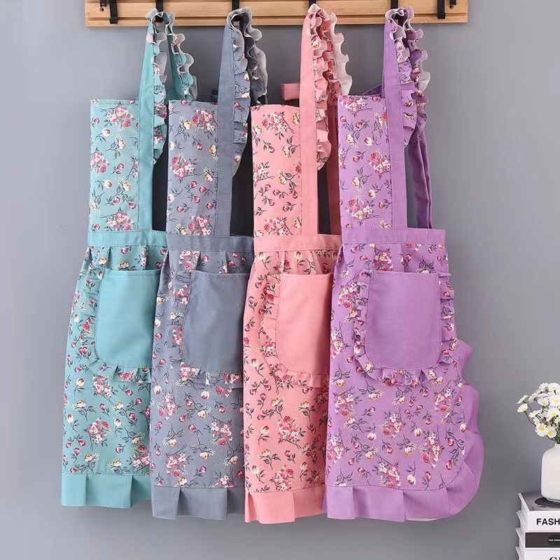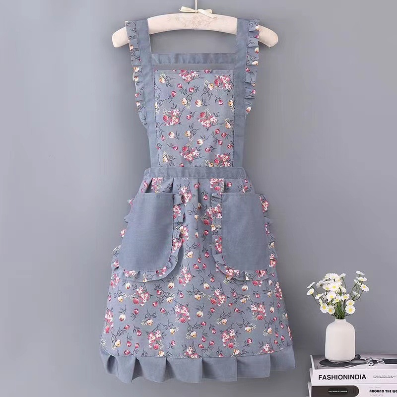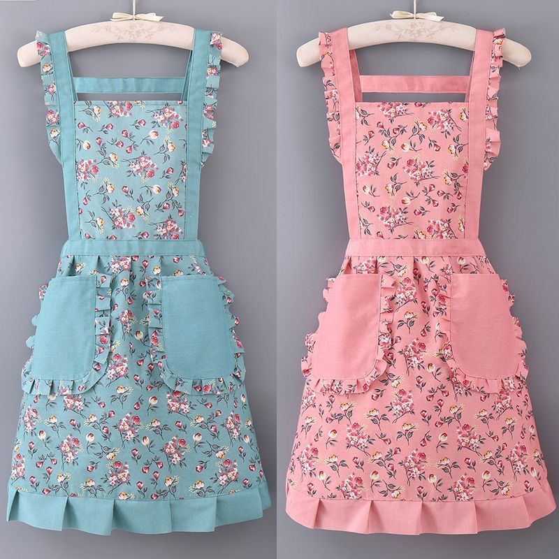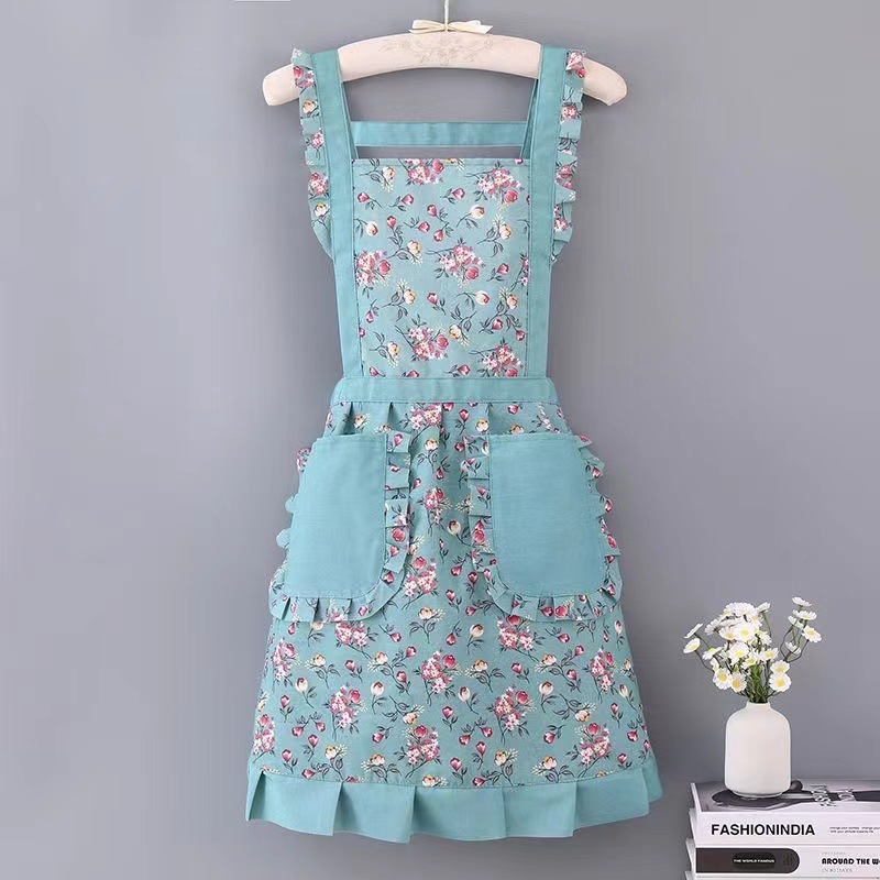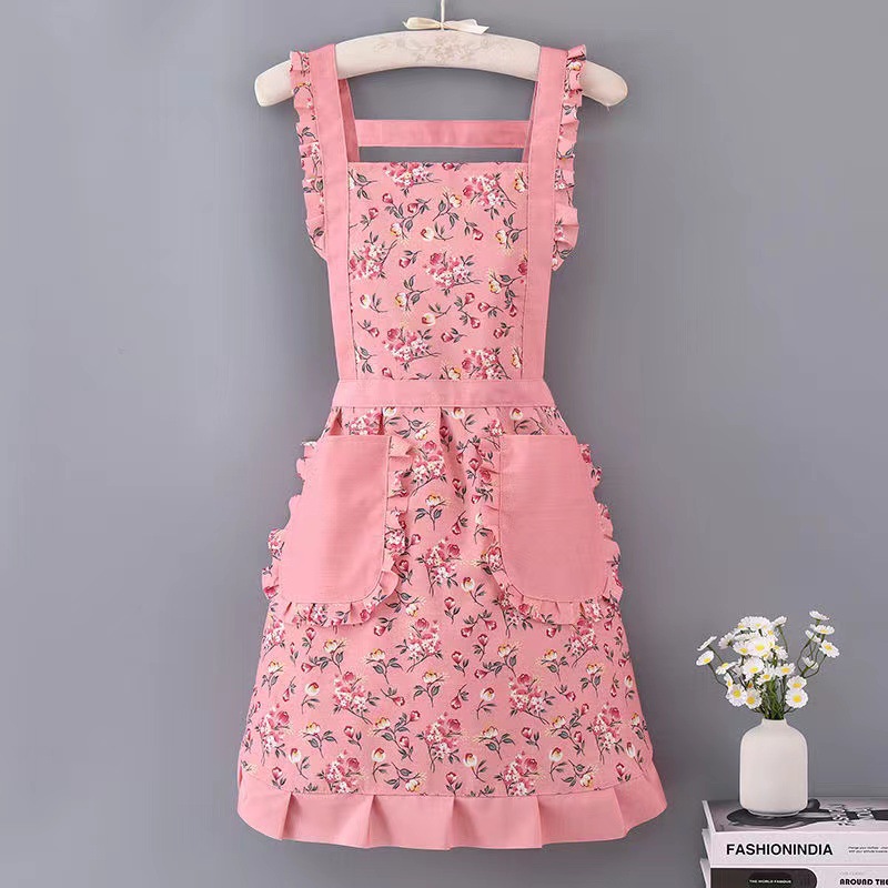 时尚碎花公主围裙厨房家用大口袋背带围裙网红透气耐磨公主围裙