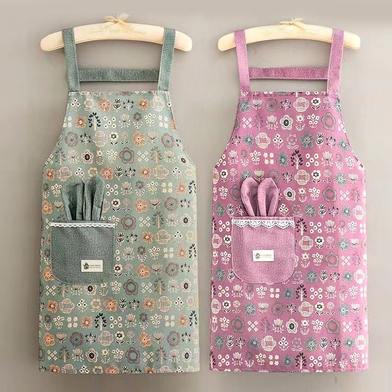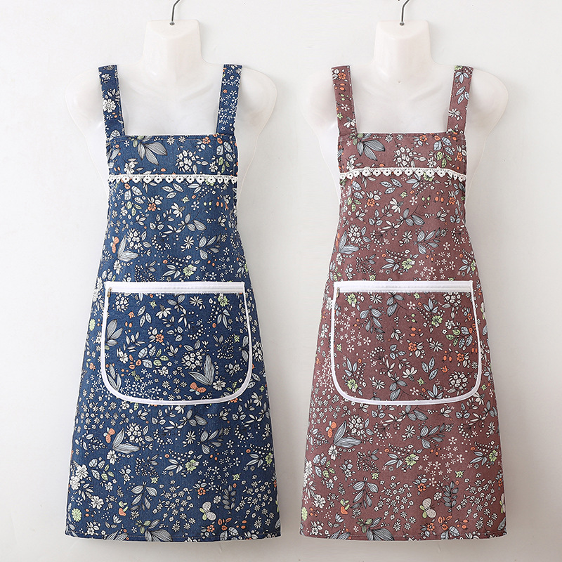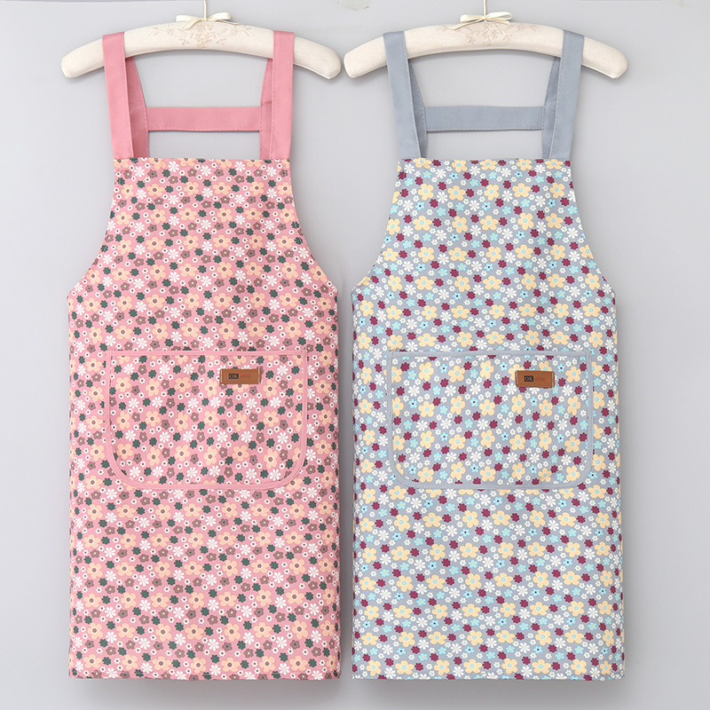 新しいスタイルのサスペンダー耐油エプロンファッションプリント防水エプロンノースリーブ大人のエプロンキッチンクリーニング家事よだれかけ