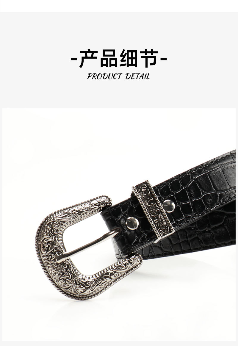 クロスボーダーレトロジェムストーンブラックベルトレディース多用途ジーンズホットガールボヘミアンスタイル彫刻ワイドレディースベルト