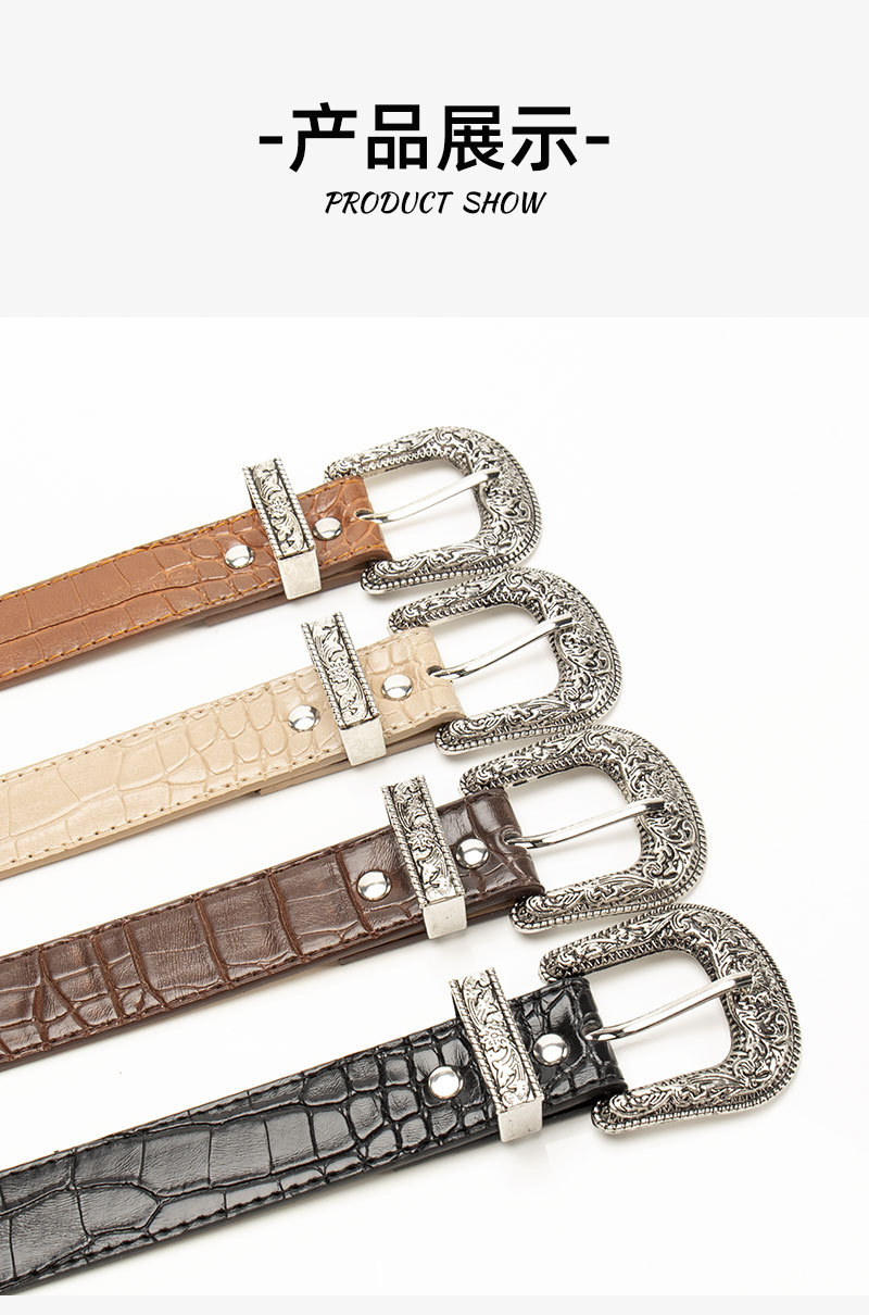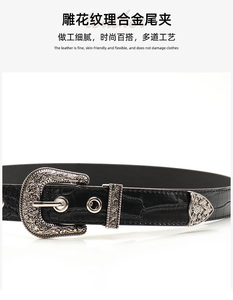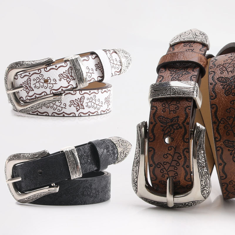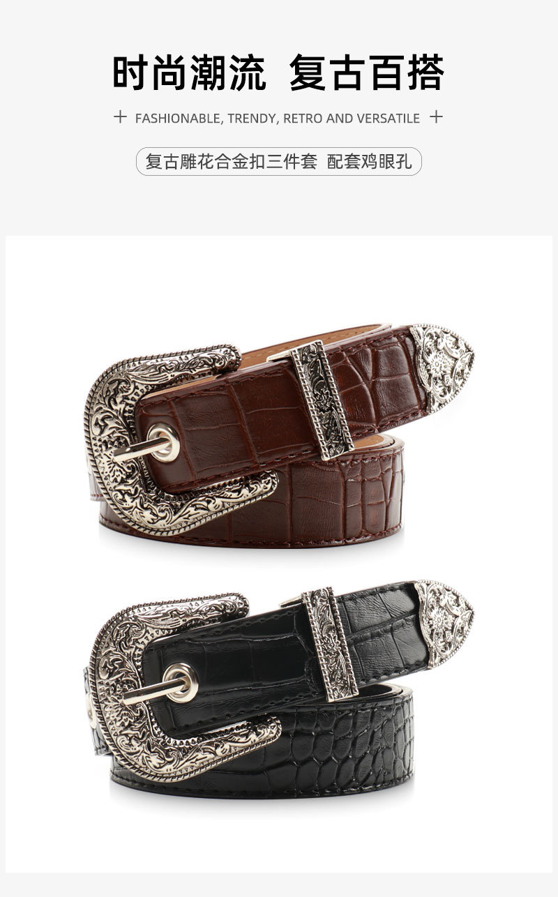 クロスボーダーレトロスタイルベルト女性用合金スリーピース彫刻バックルレディースベルトY2K多用途ジーンズ装飾ベルト