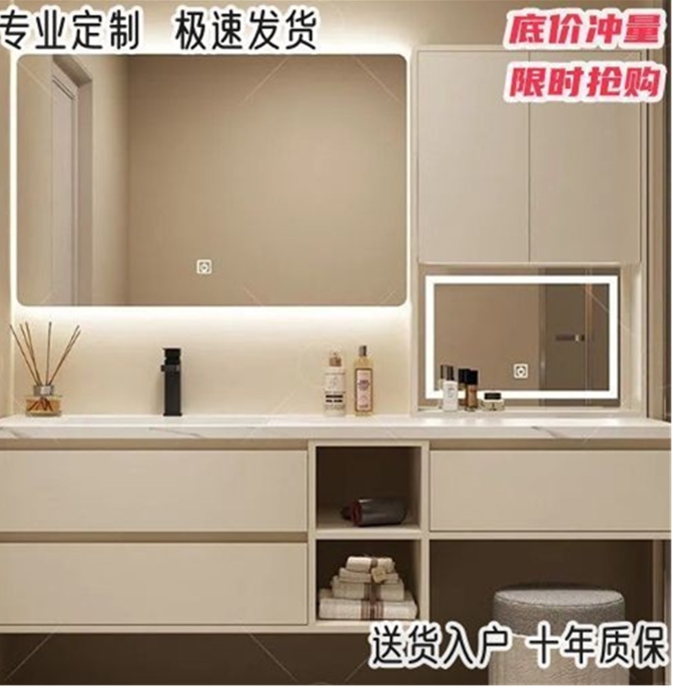 クリーム風新型浴室キャビネット加工岩板一体盆シームレストイレ多機能角化粧台セット