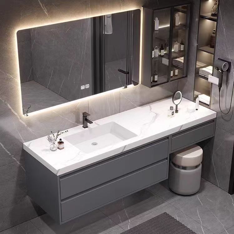 シンプルな二層スレートセラミックアンダーカウンターボウルフルセット壁掛けバスルームキャビネットホテルB&Bホテルバスルームシンク