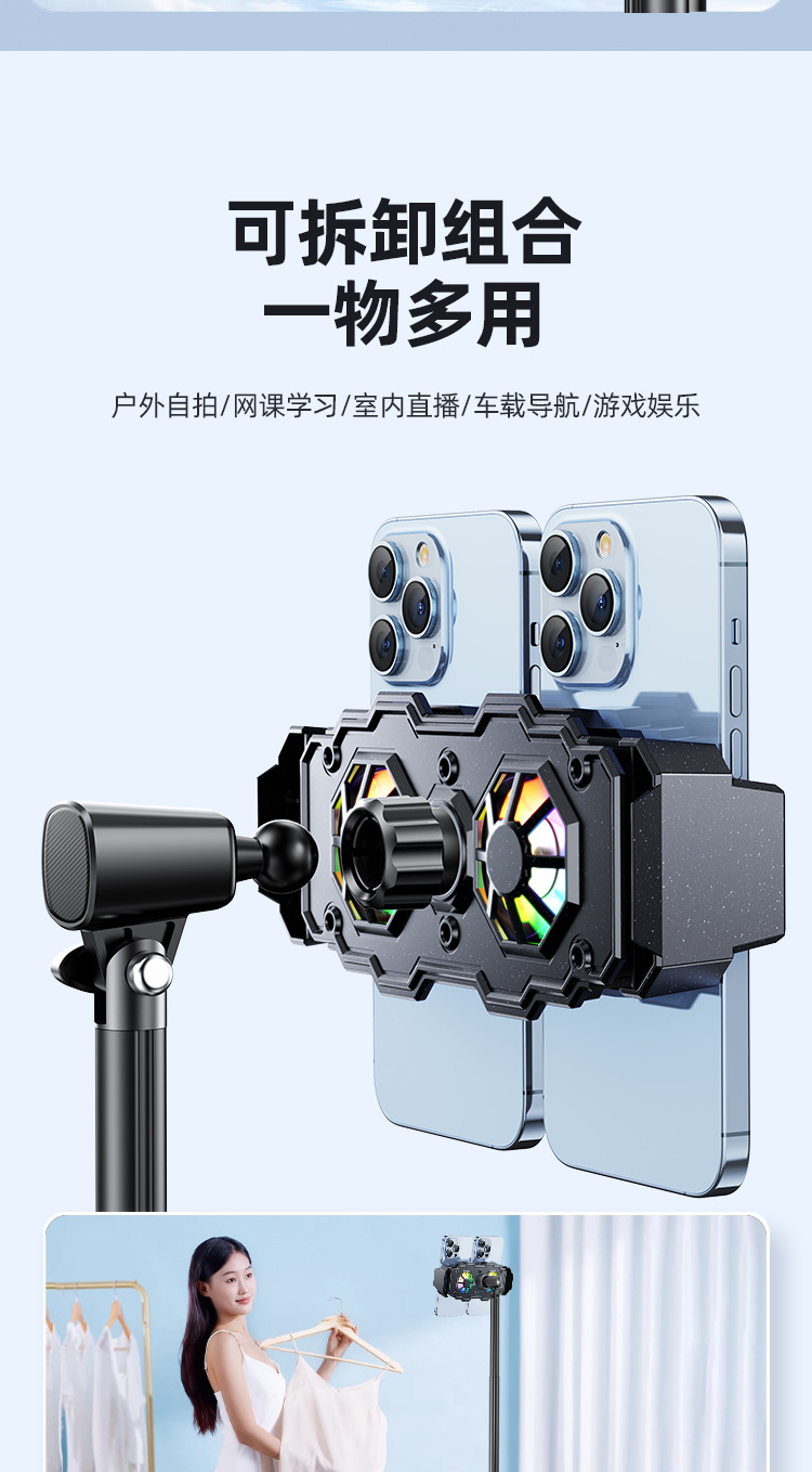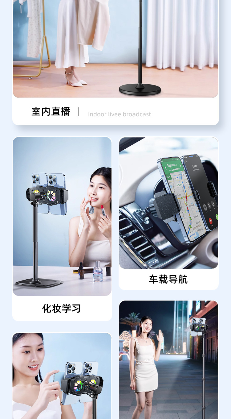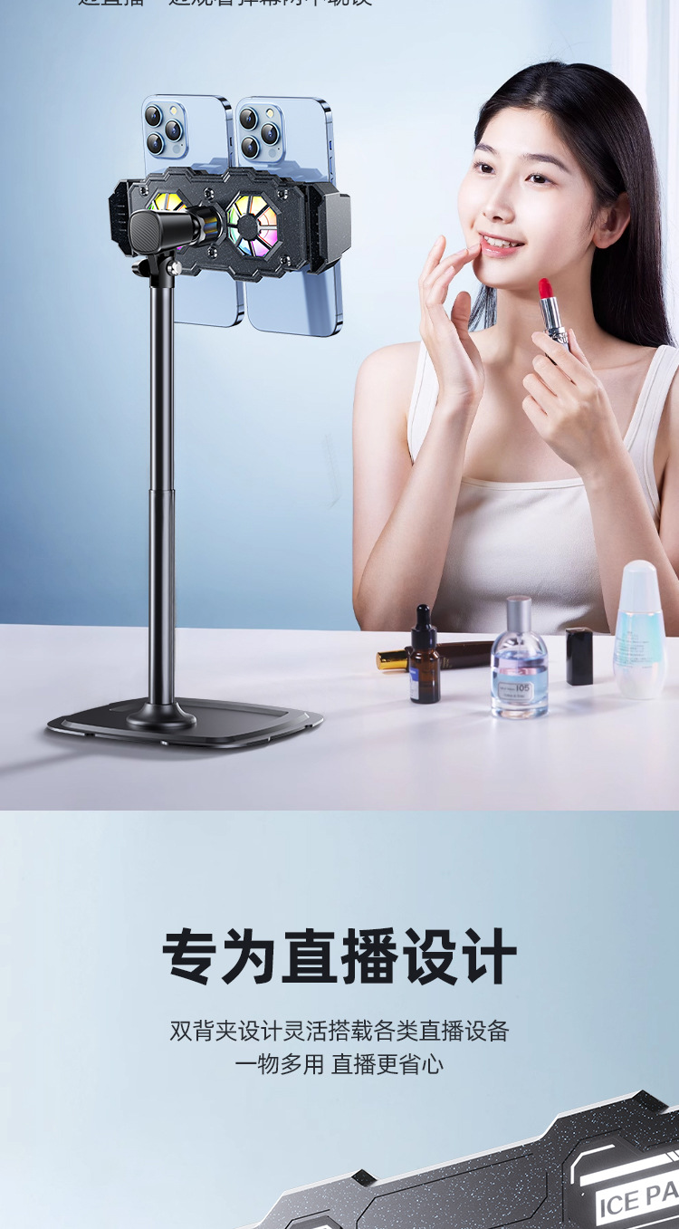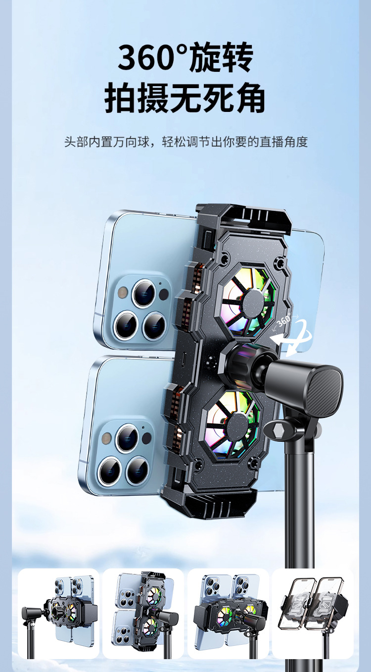 新款直播支架D-03金属手机散热器支架双机位平板支架桌面旋转升降