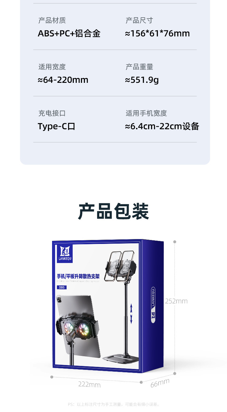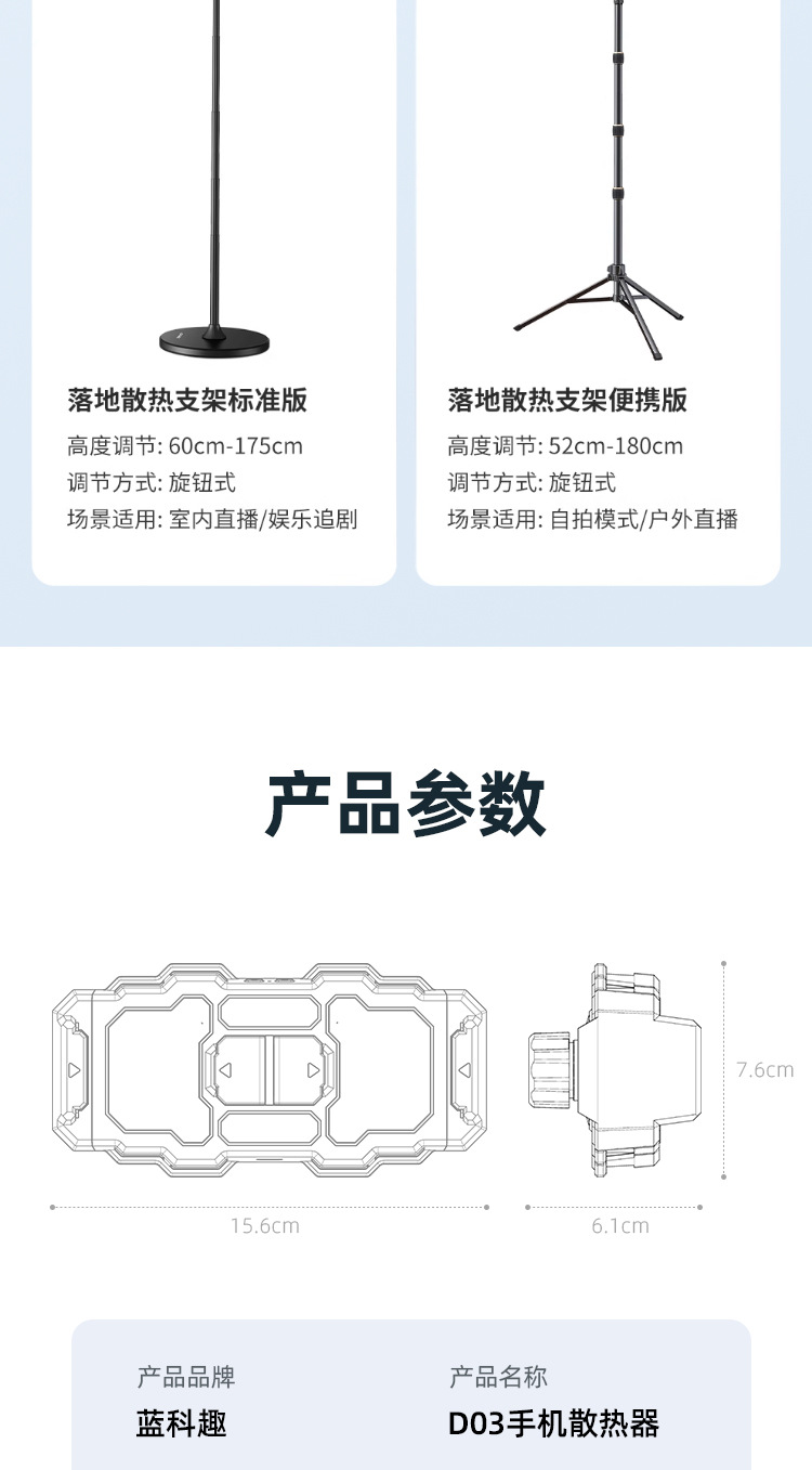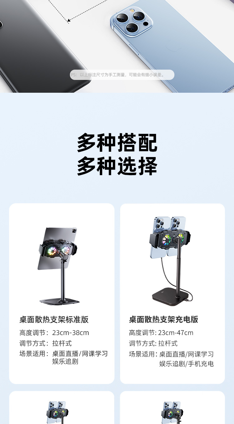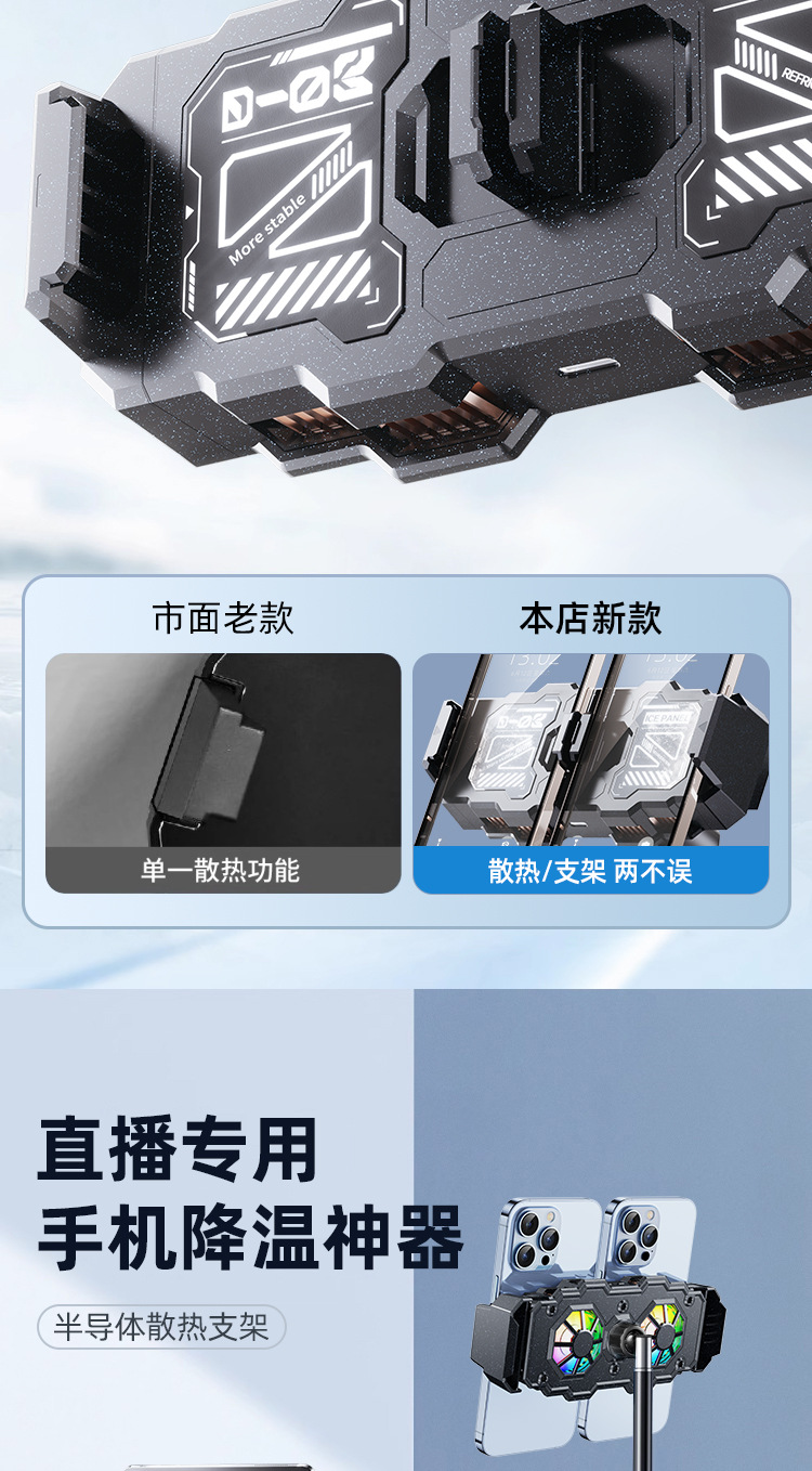 新款直播支架D-03金属手机散热器支架双机位平板支架桌面旋转升降