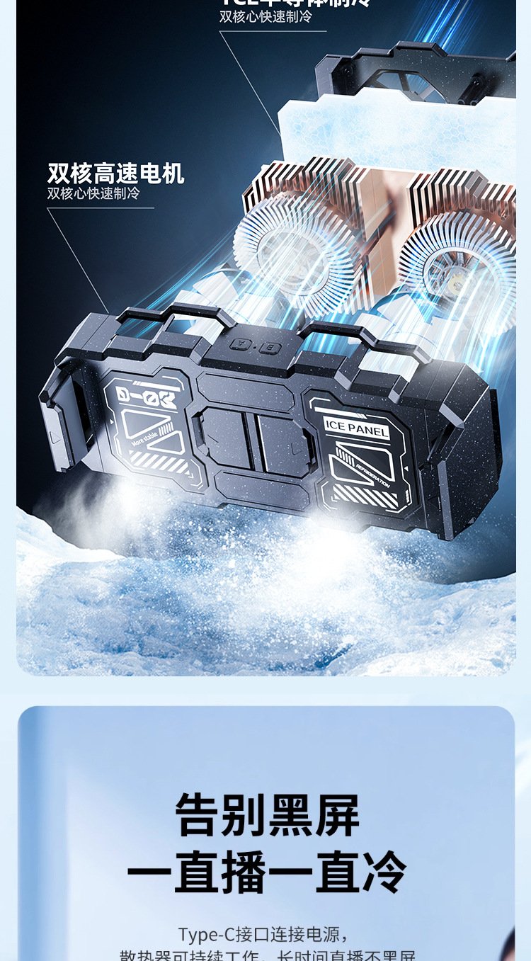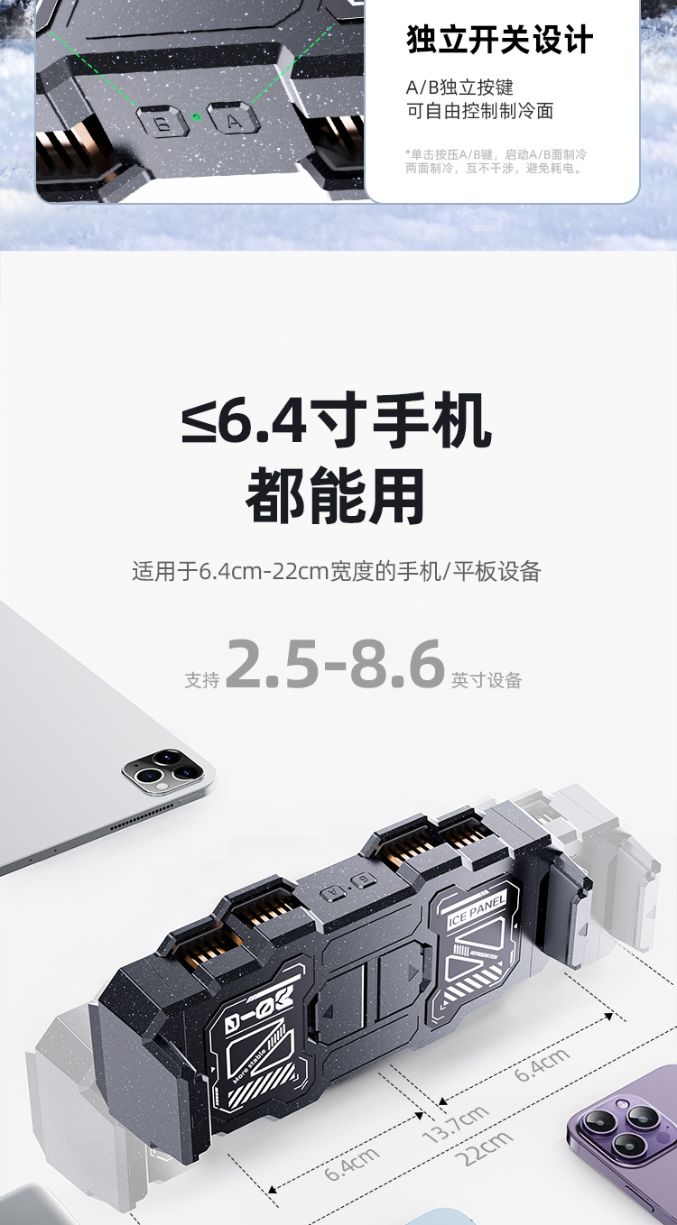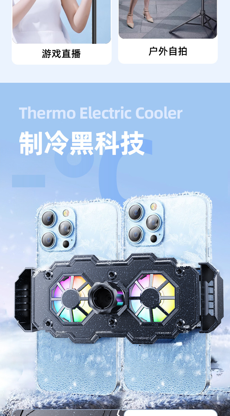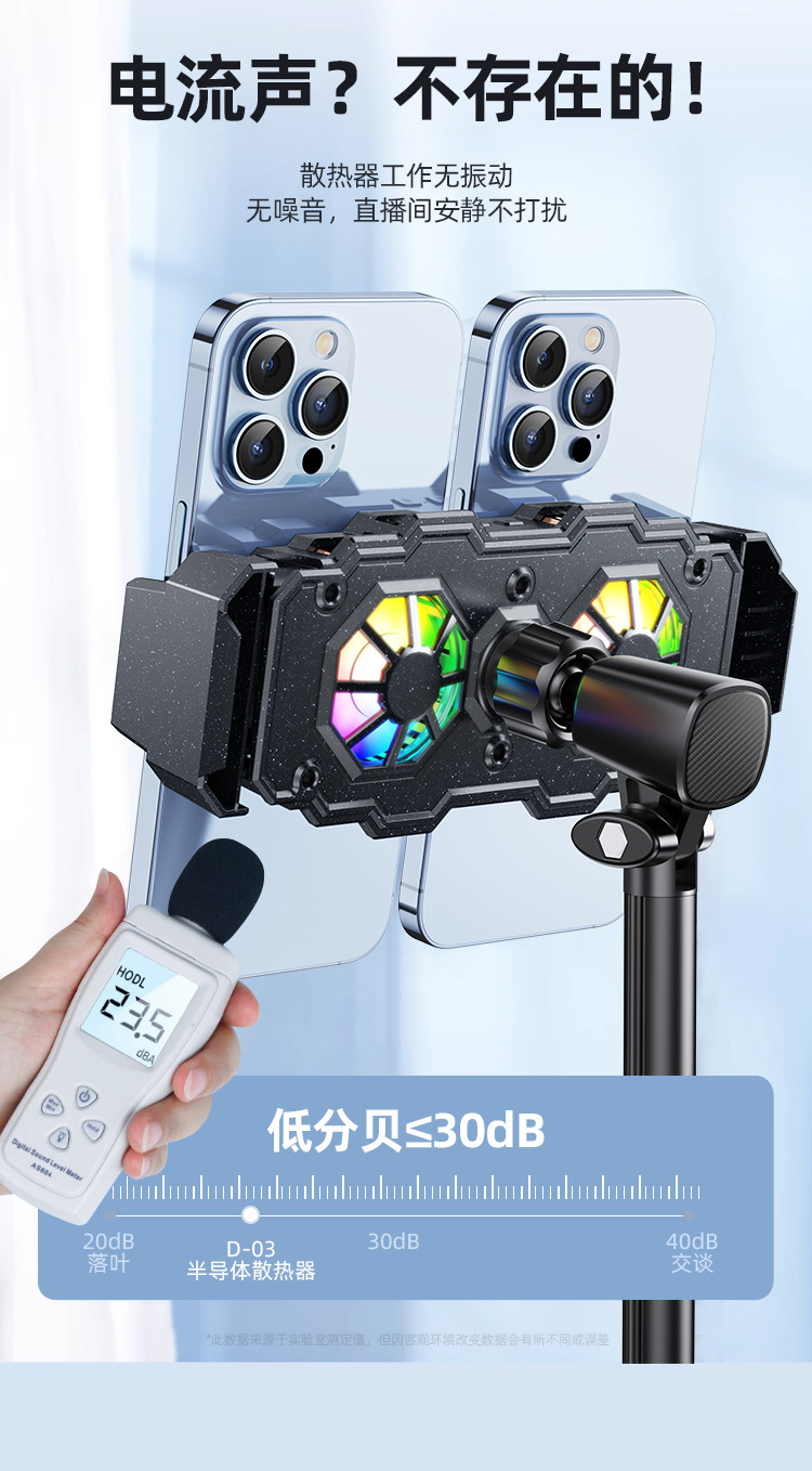 新型ダブル半導体携帯電話放熱器X53は生放送スタンドの温度制御デジタル表示冷凍携帯電話バッククリップに適している