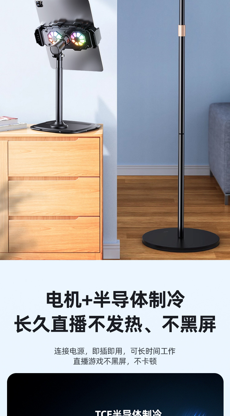 デュアルコア携帯電話タブレットホルダーラジエーターライブブロードキャスト半導体冷却サイレント冷却伸縮調整360回転