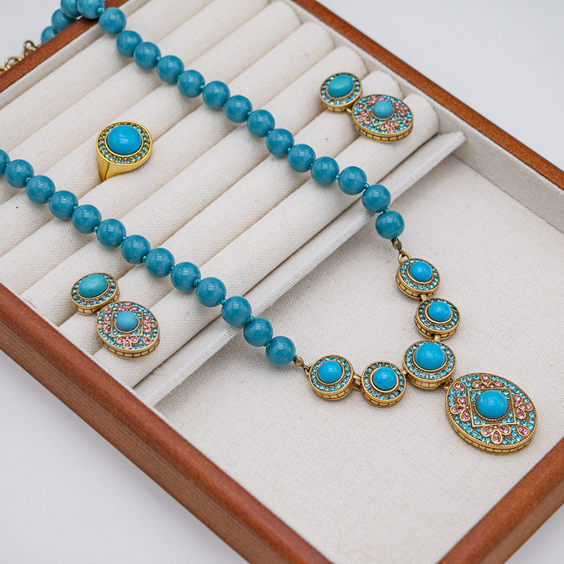 ターコイズペンダントタッセルイヤリング、古代風デザイン、軽奢で高級感のあるペンダント、高級感のあるネックレス(女性用)