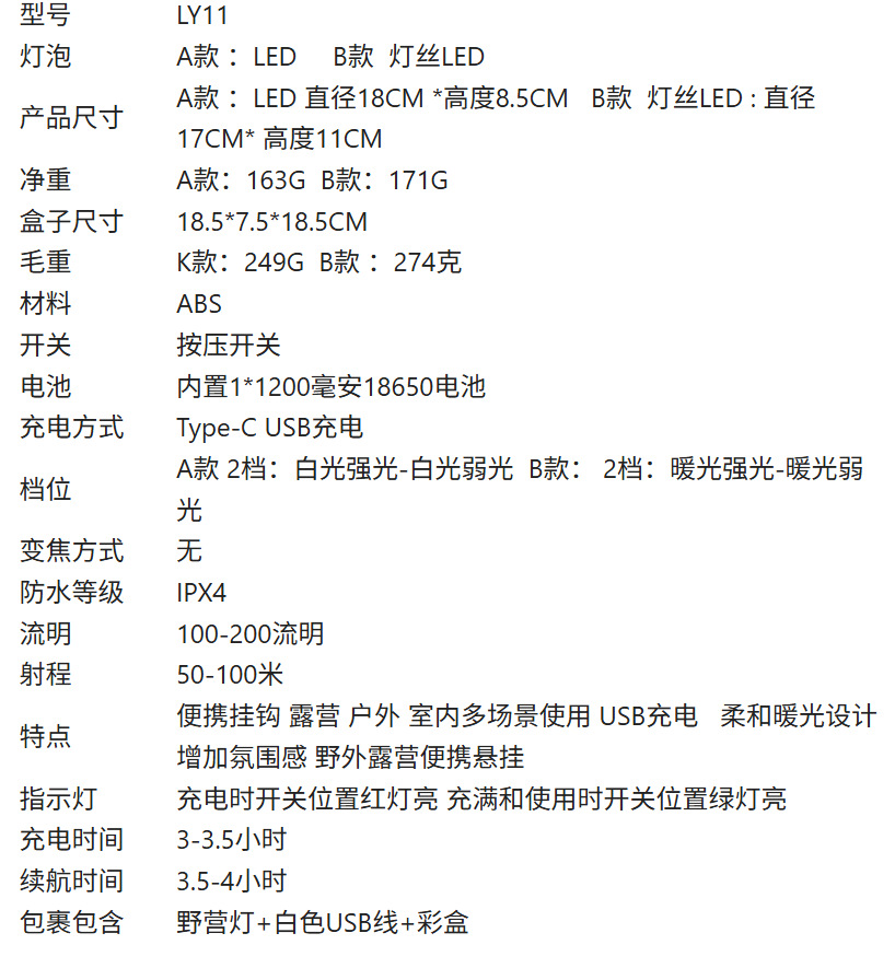 国境を越えた新しいTYPE-C充電ポータブル厚みのあるレトロなキャンプ雰囲気ライトLED多機能屋外キャンプライト