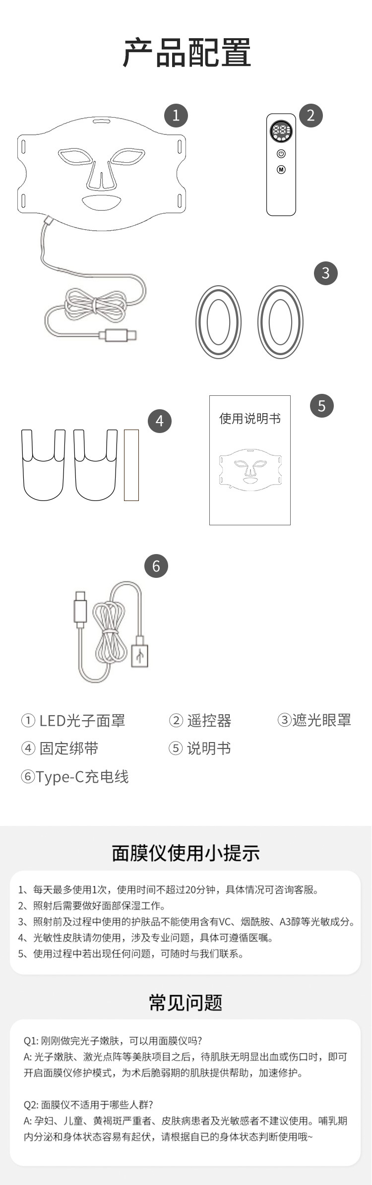 配件:面罩*1 控制器*1 说明书*1 彩盒包装*1
