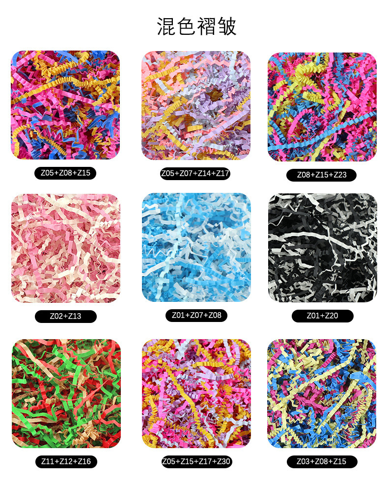 产品名称:褶皱纸丝/混色褶皱/单面双面亮色褶皱