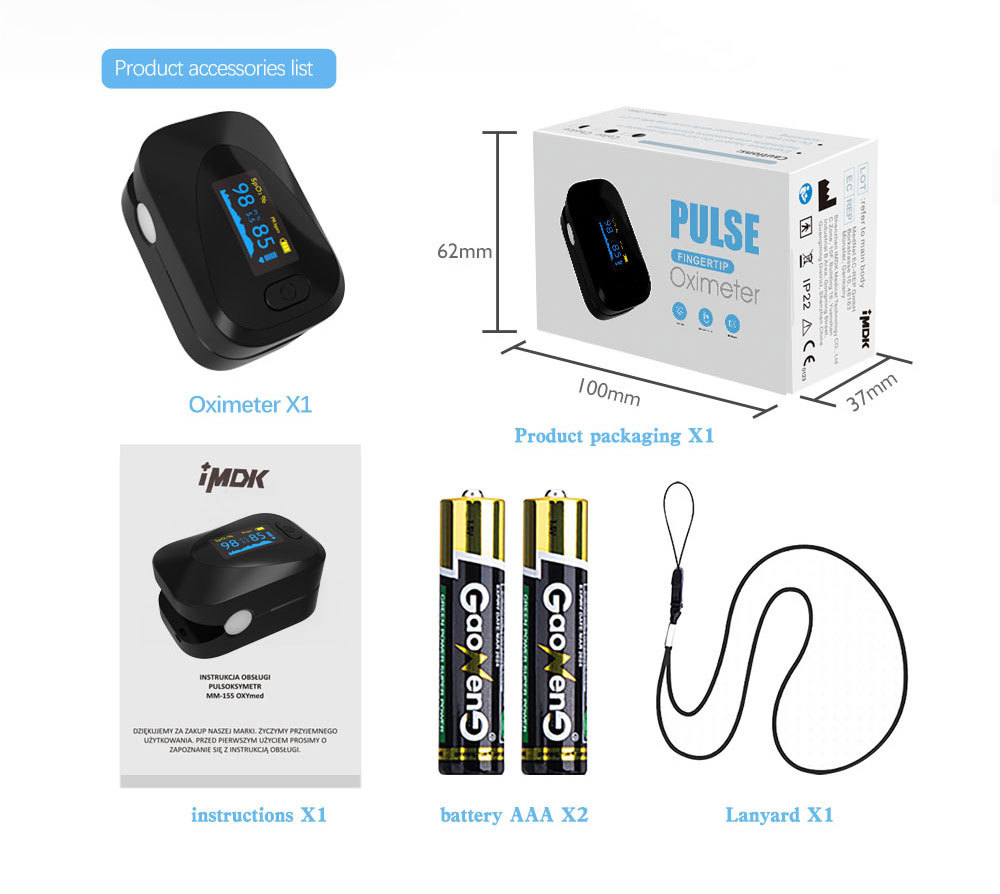 - 1 x指尖血氧计