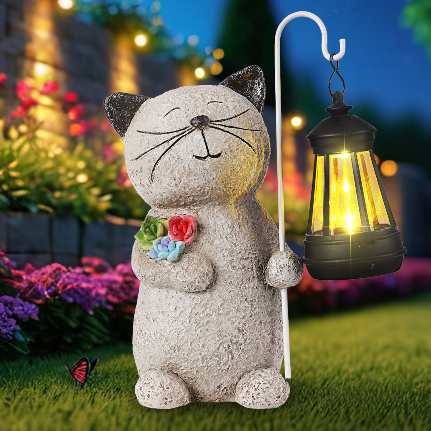 工場直売越境太陽猫提灯置物屋外花園庭園装飾小夜灯動物像