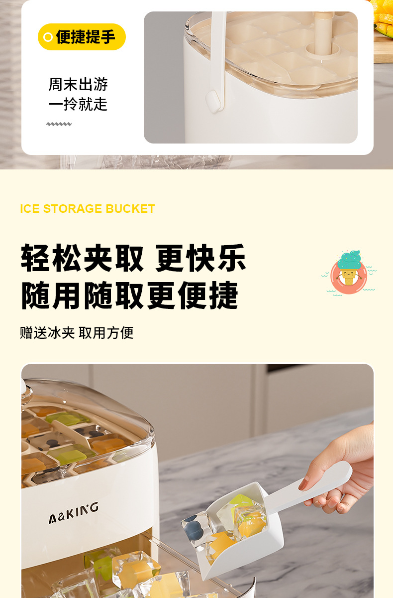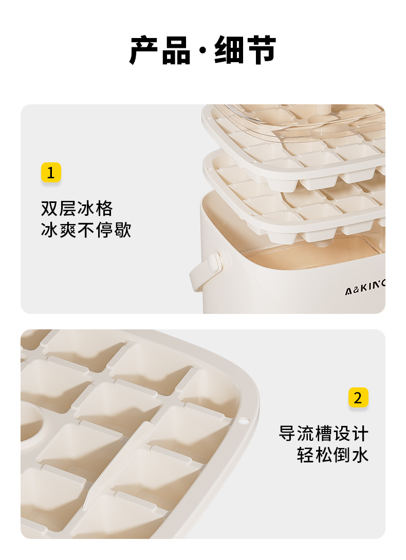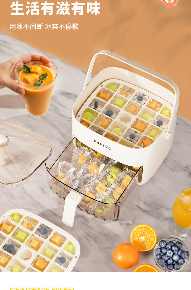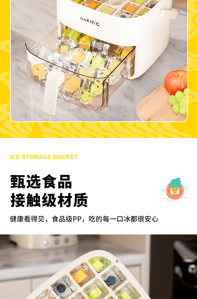 プレス製氷皿冷凍アイスキューブ型家庭用冷蔵庫製氷アーティファクト大容量氷収納ボックス食品グレード二重層蓋付き
