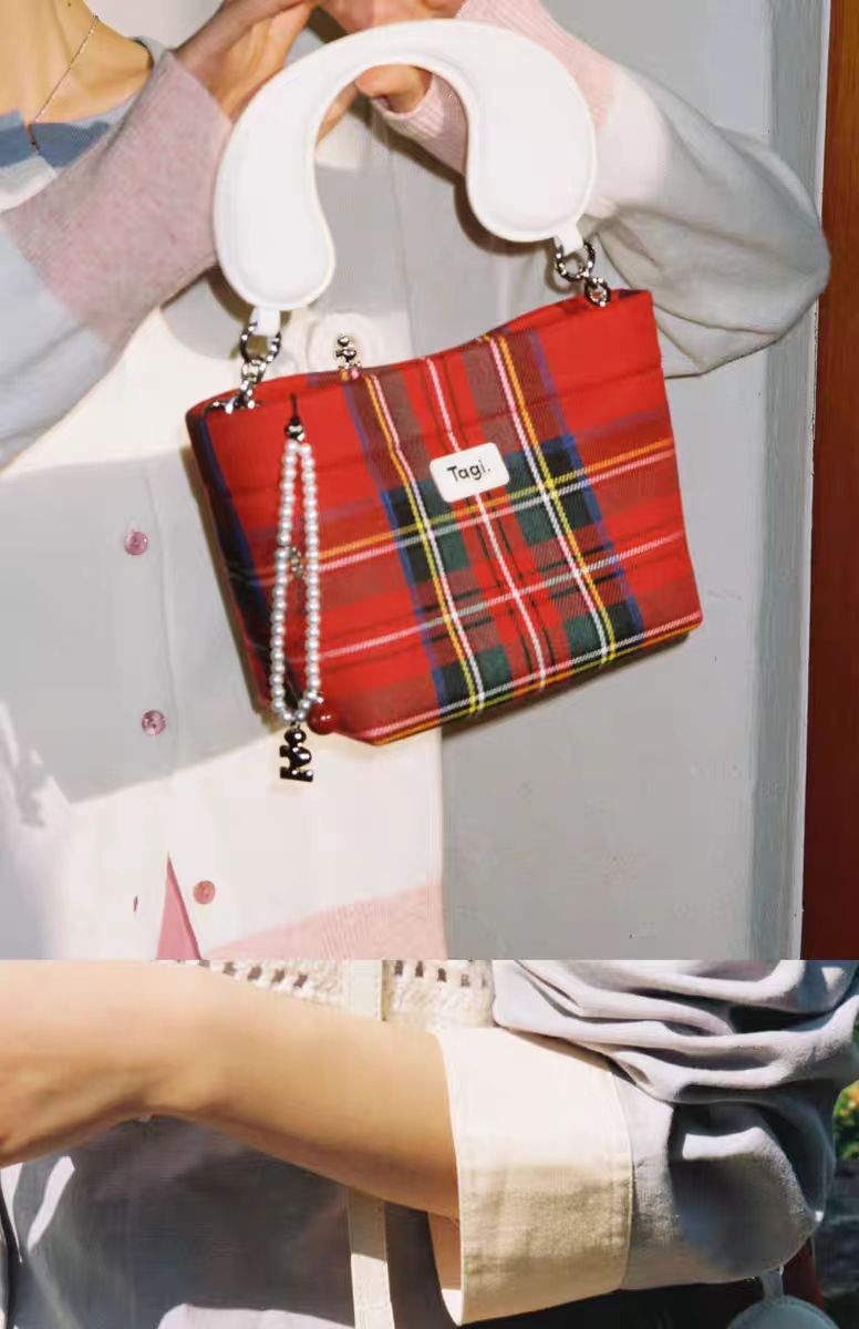Tagi彩色方块麂皮复古灯芯绒hobo大容量通勤托特包单肩包